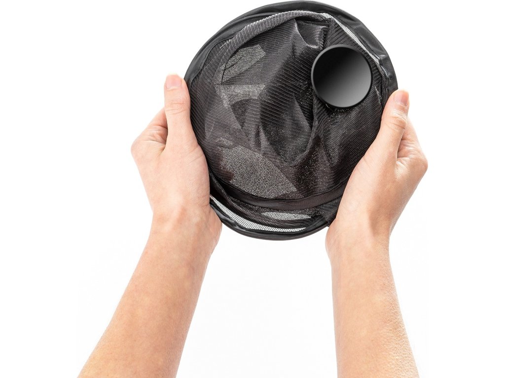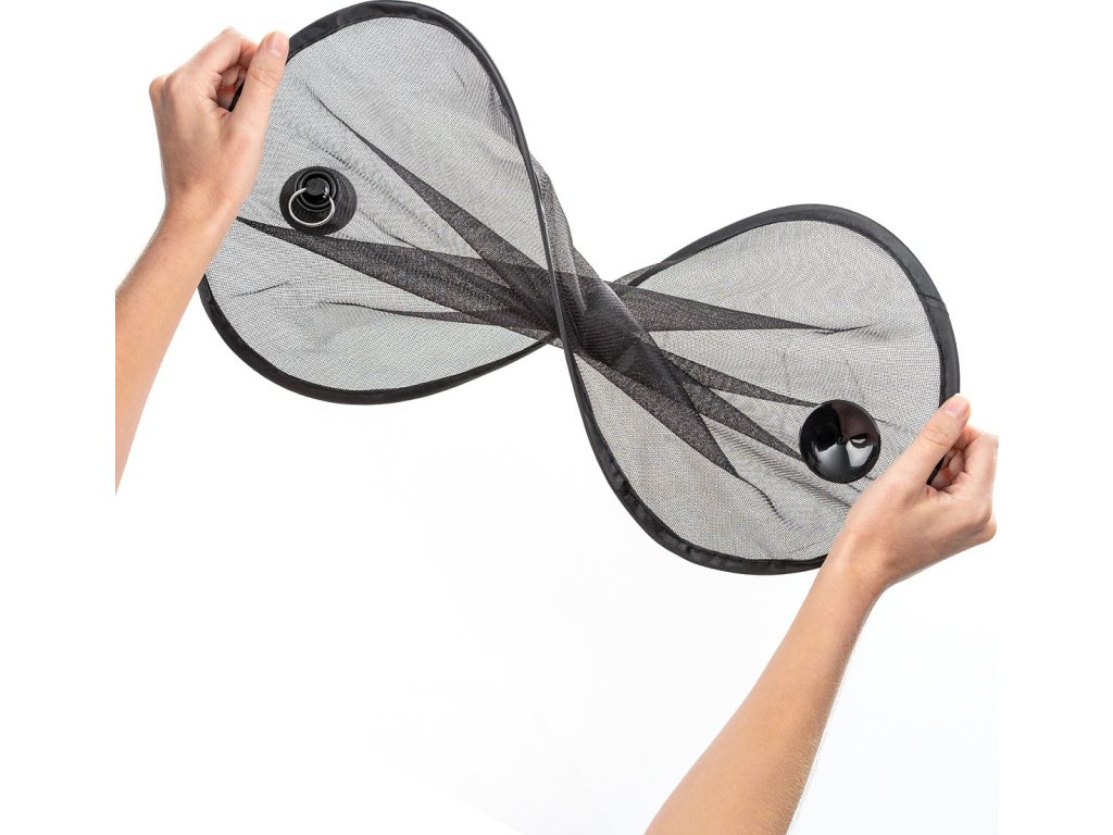 Ochranu proti slunci lze rychle a snadno sklopit, pokud ji za zamračeného dne nepotřebujete. Chcete-li to provést, musíte jednu stranu otočit o 180 °, aby se vytvořily dva kruhové konce. Tyto dva kruhy jsou pak tlačeny do sebe - to je vše.