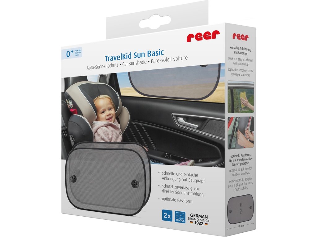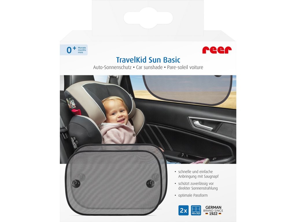 TravelKid Sun Basic poskytuje vašemu dítěti v autě příjemný stín a zabraňuje zahřívání vnitřku vozu. Vysoce kvalitní látka nabízí plnou ochranu proti pronikajícím slunečním paprskům a chrání tak vaše dítě před úžehem a přehřátím.