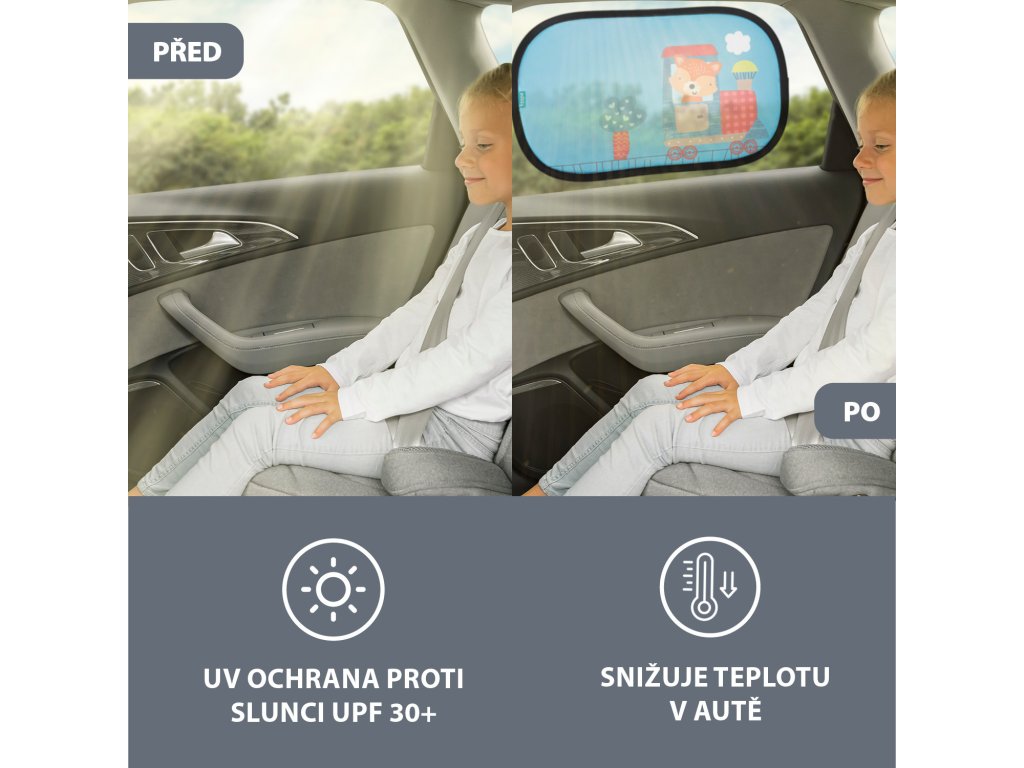 Ostré sluneční paprsky dokáží jízdu pěkně znepříjemnit. Zabránit jim dokáže sluneční clona do auta Zopa s ochranou UPF 30+. Spolu se clonou navíc děti získají i zábavného společníka na cesty v podobě zvířátek, která zdobí tuto ochrannou pomůcku. <?xml:namespace prefix = "o" ns = "urn:schemas-microsoft-com:office:office" />