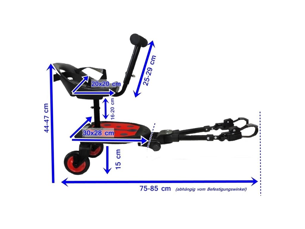 Připevnění je jednoduché a možné téměř ke každému kočárku. Po jeho uchycení k rámu kočárku je zcela přirozené, že může být omezen snadný přístup ke kočárku tak, jak jste zvyklí.