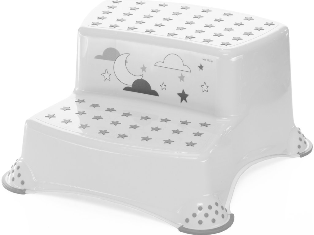 Dvojstupínek pro malé děti k umyvadlu a k WC s protiskluzovou úpravou pomáhá bezpečně si osvojovat základní hygienické návyky.