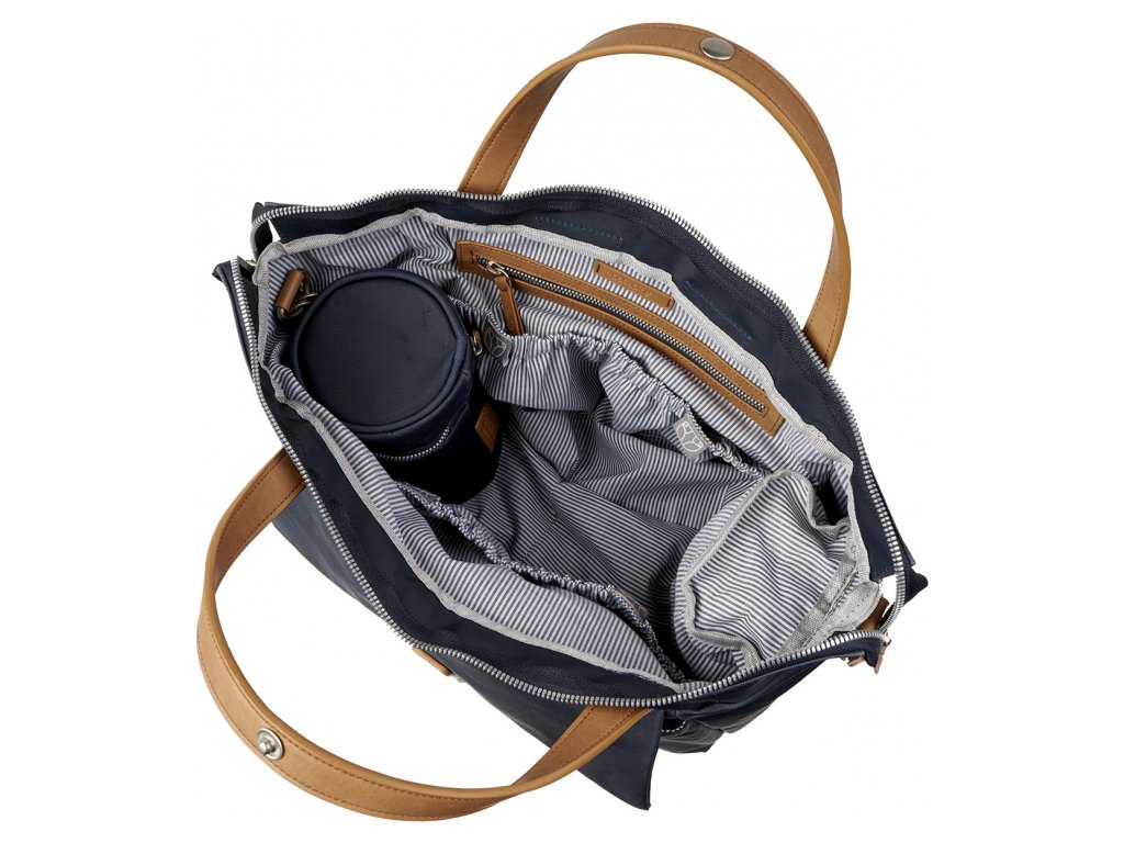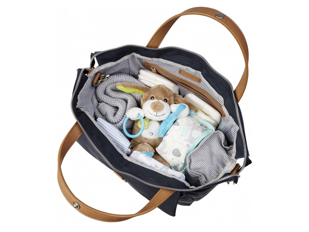 Hlavní hluboká část tašky umožňuje uložení mnoha potřebných věcí, jako jsou plenky, ubrousky, náhradní oblečení, textilní pleny a hračky pro celodenní pobyt mimo domov. Součástí tašky je také prostorná přebalovací podložka, vnitřní a vnější kapsy, do kterých můžete pohodlně schovat klíče, peněženku, dudlík atd, - a ty pak budete mít vždy po ruce.