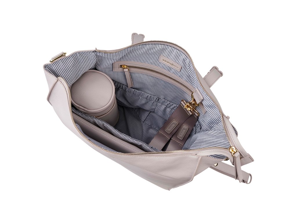 Je plná úžasných funkcí – obsahuje termoizolační obal na lahev, velkou přebalovací omyvatelnou podložku, popruhy k upevnění tašky ke kočárku a spoustu užitečných kapes v prostorném interiéru. To vše přichází v módní textilii, která nejen že dobře vypadá, ale je i velmi praktická.