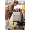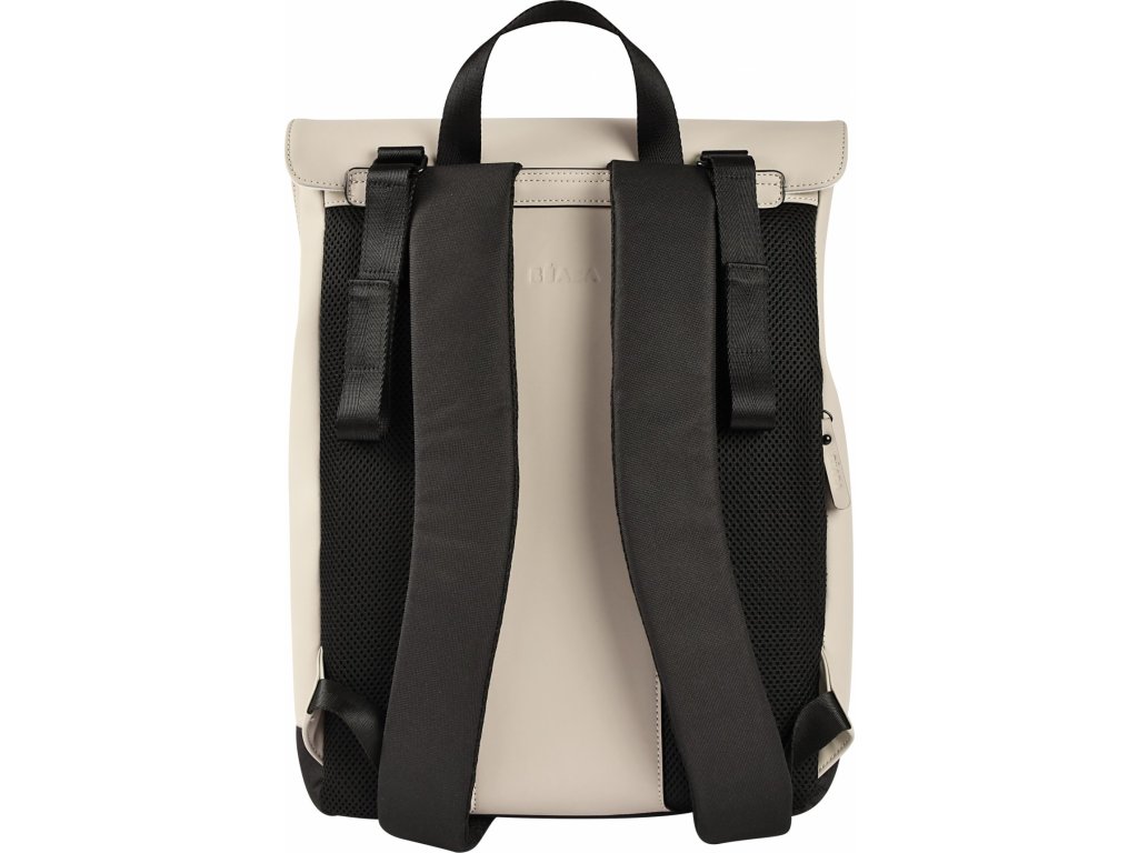 Větrací panely na zadní straně a polstrované ramenní popruhy zpříjemňují nošení batohu na zádech. Držadlo umožňuje nošení v ruce, součástí batohu jsou i úchyty pro zavěšení na kočárek.