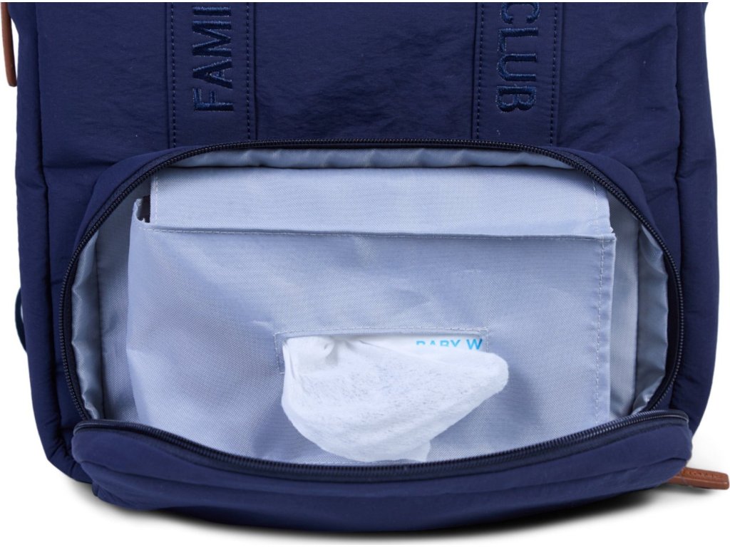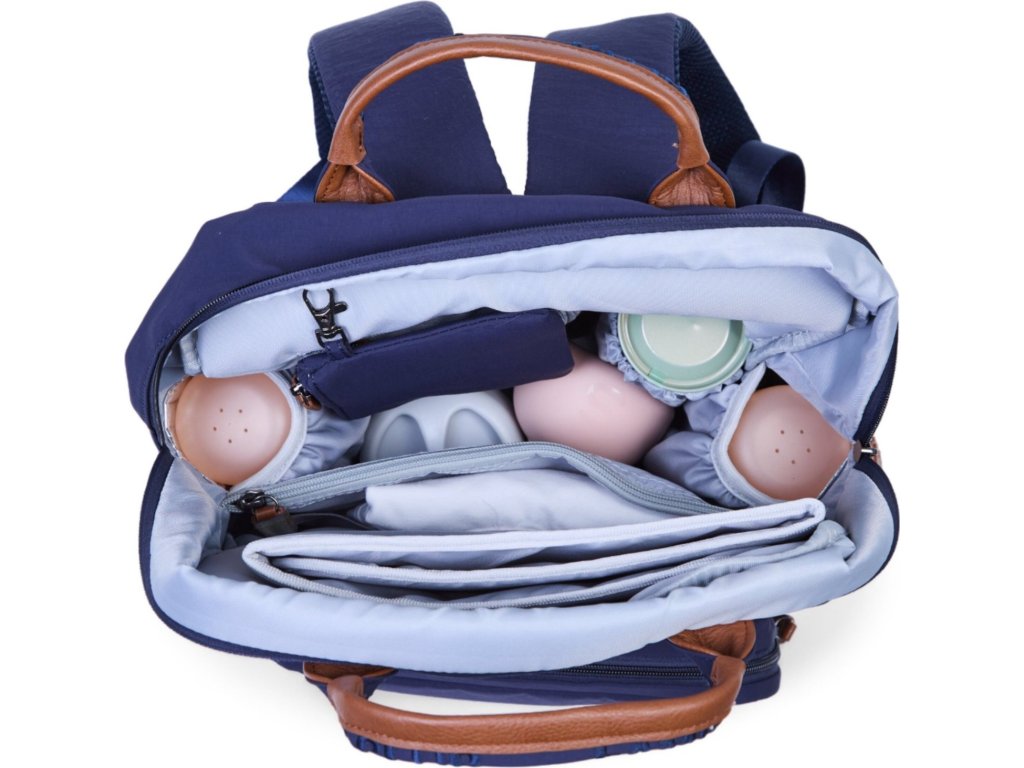 Součástí batohu je přebalovací podložka a termoizolační kapsy na láhev. Přehlednou organizaci obsahu batohu zaručuje množství vnitřních i vnějších kapes a úchytů. Díky speciální kapse pro vlhčené ubrousky jsou ubrousky vždy okamžitě po ruce připravené k použití. Úchyty na kočárek umožňují zavěšení batohu na rukojeť kočárku, úchyt na vytahovací rukojeť kufru vám usnadní cestování během dovolené.