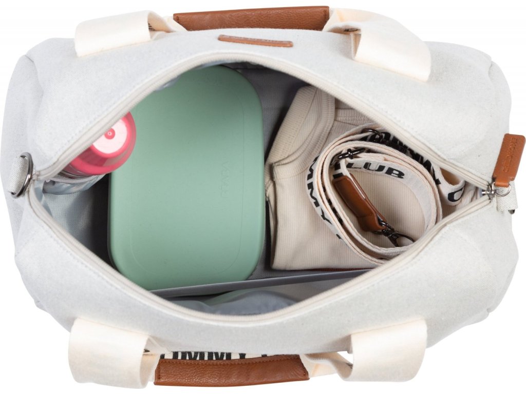 Stylová přebalovací taška Childhome Mommy Club je perfektní pro snadné a přehledné uložení všeho potřebného na procházky a výlety s miminkem. Vnitřní uspořádání nabízí termoizolační kapsu na láhev a elastické kapsy na uložení vlhčených ubrousků, plen, náhradního oblečení apod. Součástí je i přebalovací podložka.