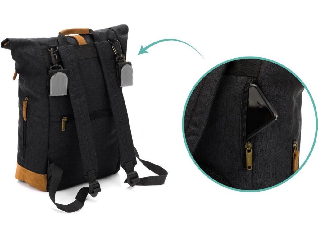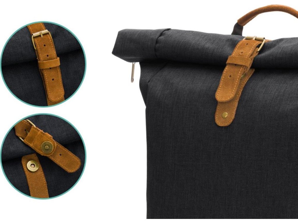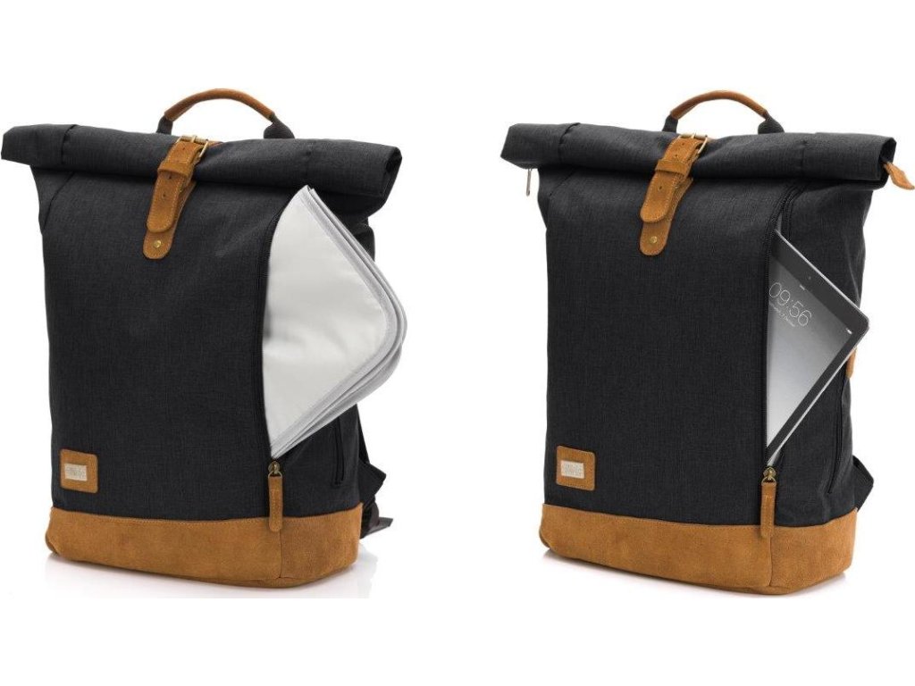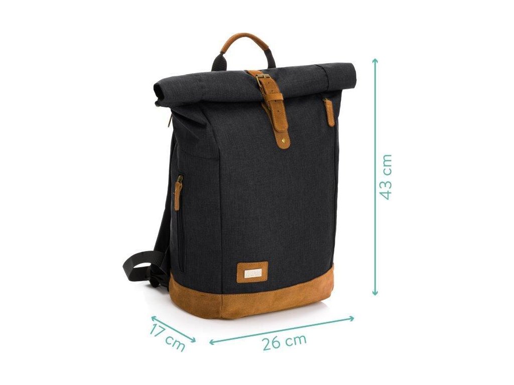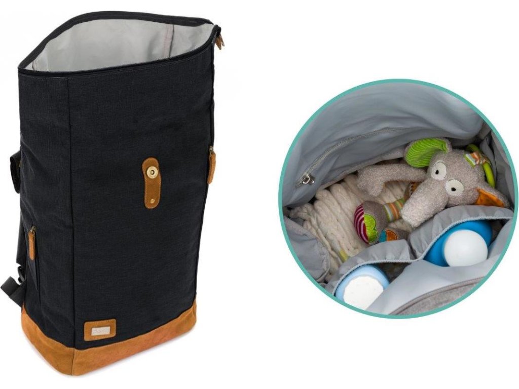 S přebalovacím batohem Berlin v rolovacím stylu získáte nejen stylový přebalovací batoh se všemi důležitými funkcemi pro přebalování, ale také moderní volnočasový batoh s cool vzhledem, který můžete používat i dále.