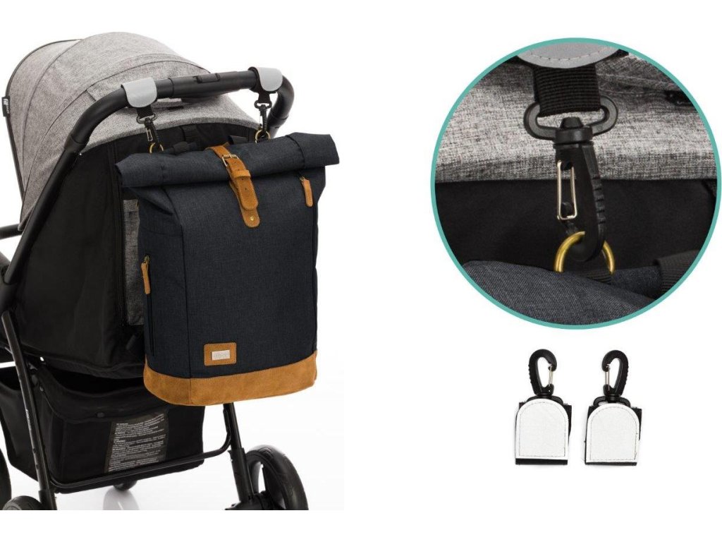 Díky ergonomicky tvarovaným a měkce polstrovaným popruhům je přebalovací batoh Berlin velmi pohodlný i na delší procházky. Celoobvodový batoh je zakončen dvěma přiloženými upevňovacími klipy, takže batoh lze snadno připevnit na madlo kočárku. Jako další bezpečnostní prvek tyto klipy odrážejí světlo světlometů automobilu v noci nebo za soumraku.