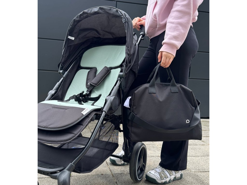 je možné připnout ke kočárku, na tašce jsou všitá poutka - lze snadno připevnit karabinky (nejsou součástí)