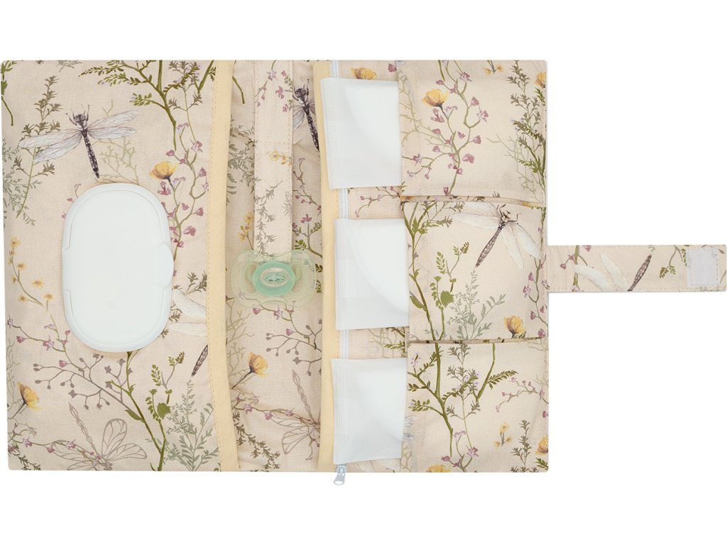 Praktický cestovní organizér v krásném textilním provedení s vnitřními přehrádkami vám pomůže přehledně uložit přebalovací potřeby pro vaše miminko. Uvnitř najdete kapsu na pleny, přihrádku na vlhčené ubrousky, kapsu na zip a 3 malé kapsy na drobnosti. Organizér se snadno zapíná na suchý zip.