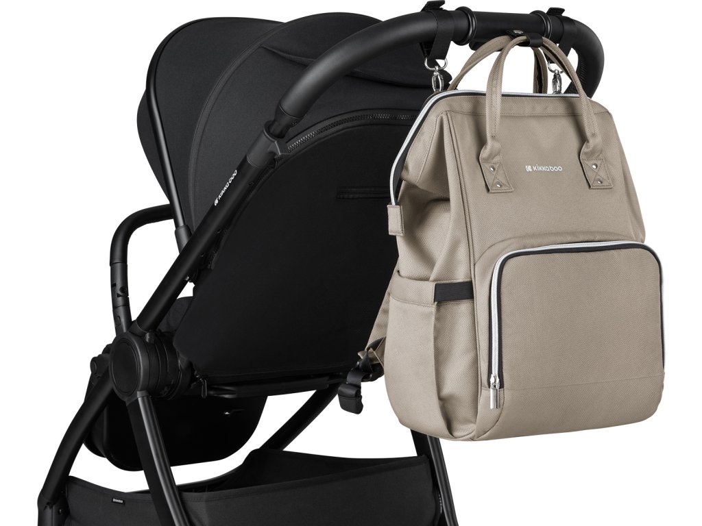 Batoh je možné zavěsit na kočárek, nosit na zádech i v ruce.
