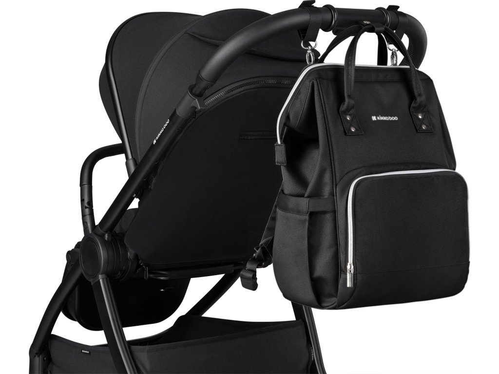 Batoh je možné zavěsit na kočárek, nosit na zádech i v ruce.