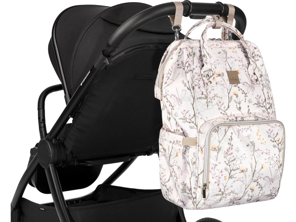 Stylový přebalovací batoh umožňuje přehledné uložení všeho potřebného na procházky a výlety s vaším dítětem. Klipy umožňují zavěšení na madla kočárku.