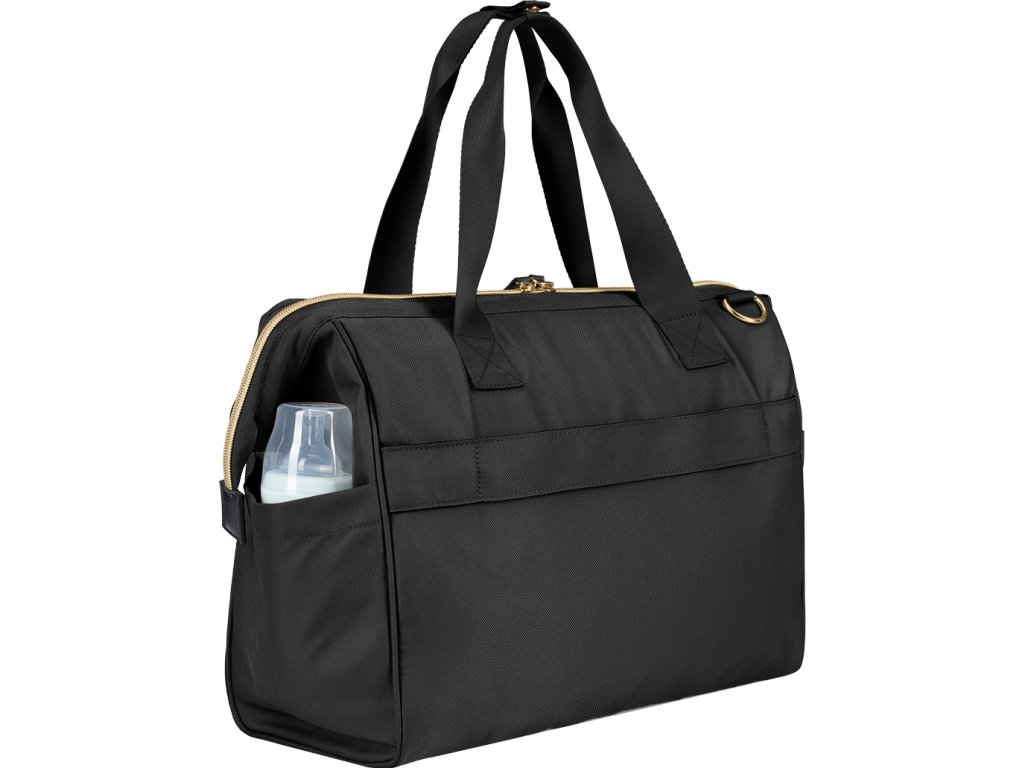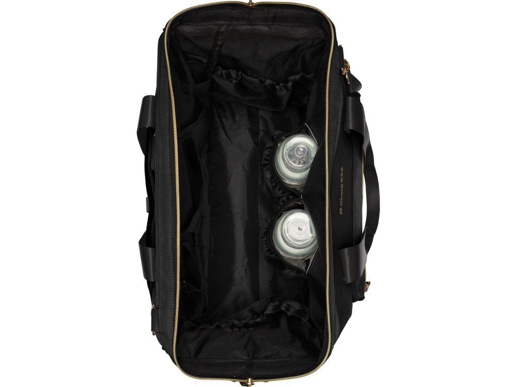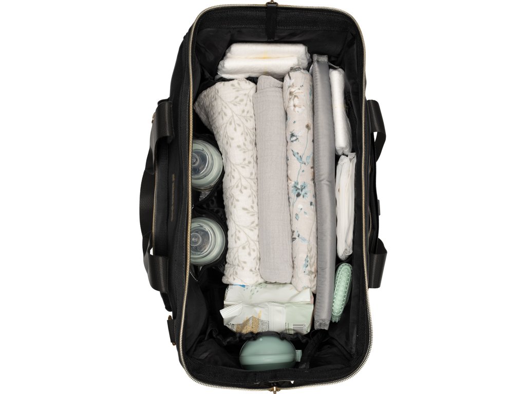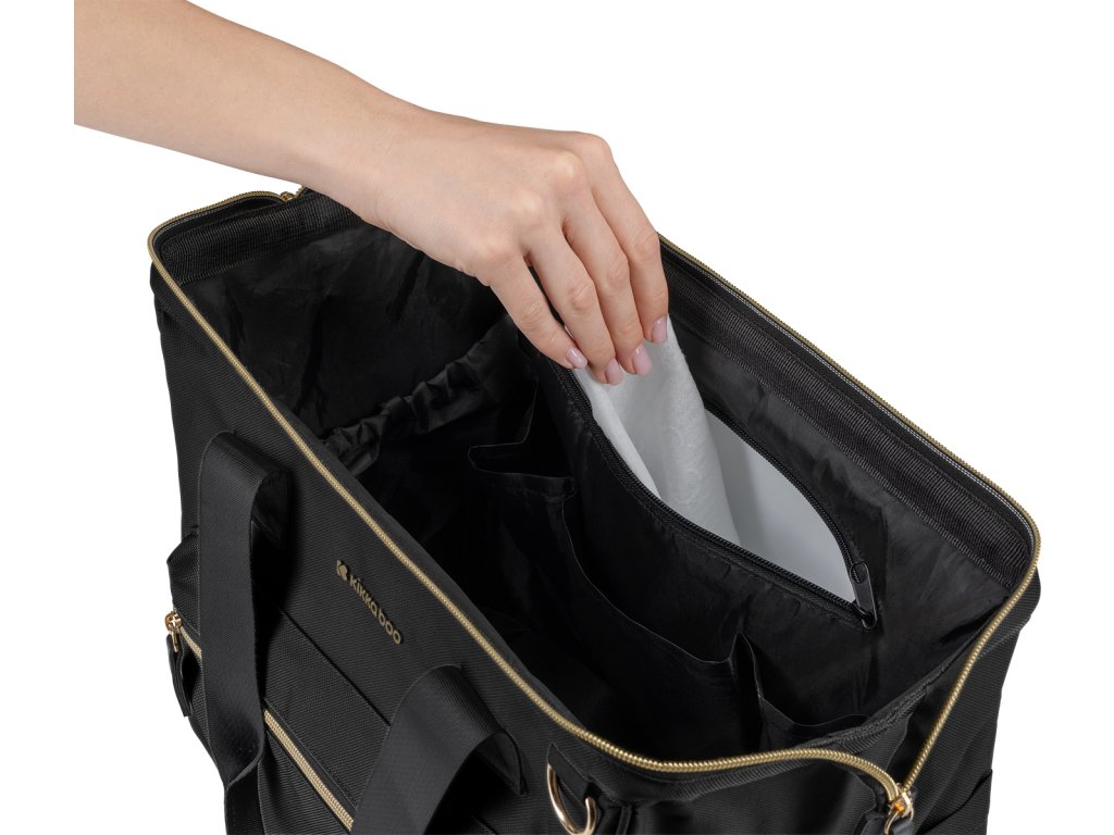 Uvnitř tašky najdete množství kapes a přihrádek, voděodolnou kapsu pro uložení vlhkých předmětů a dvě termoizolační kapsy pro láhve. Široký způsob otevírání tašky usnadňuje orientaci v uloženém obsahu. Na vnější straně najdete kapsy s uzavíráním na zip i kapsu pro uložení láhve. Součástí tašky je i odnímatelné pouzdro na drobnosti a přebalovací podložka.