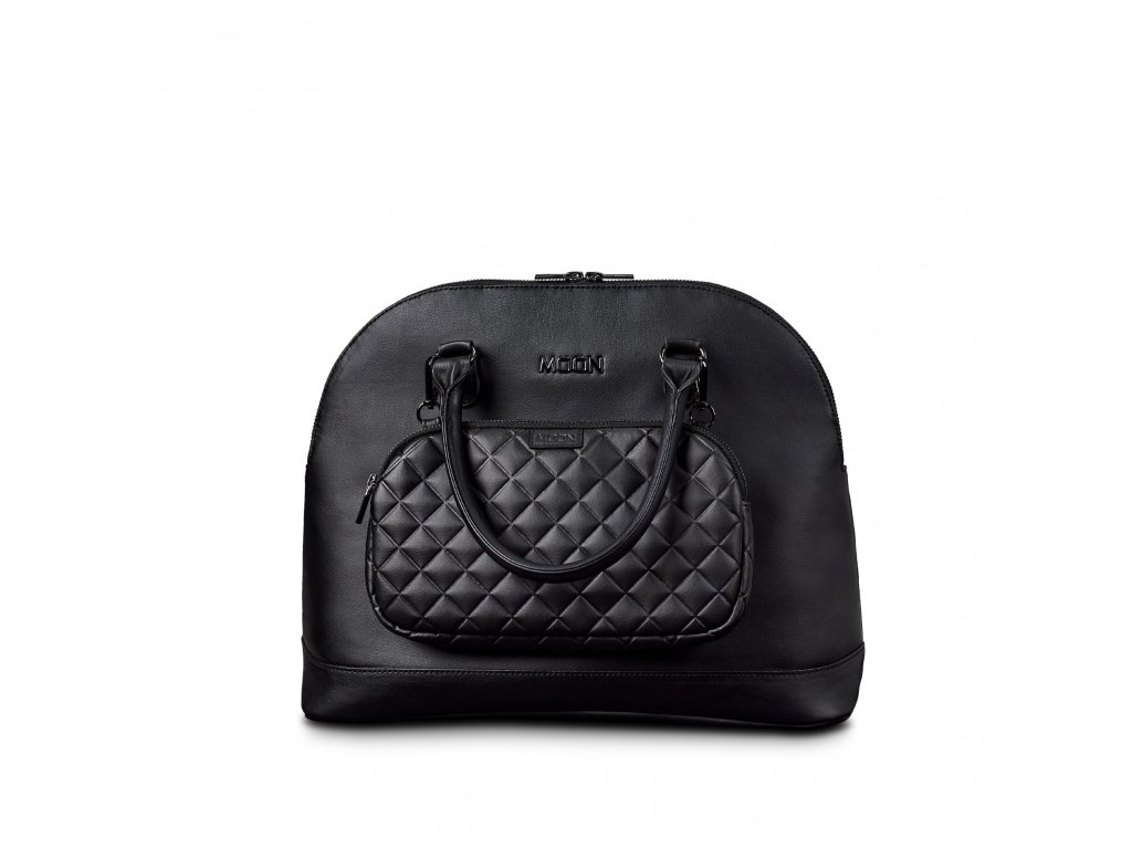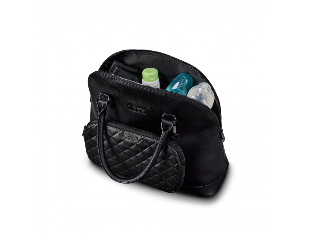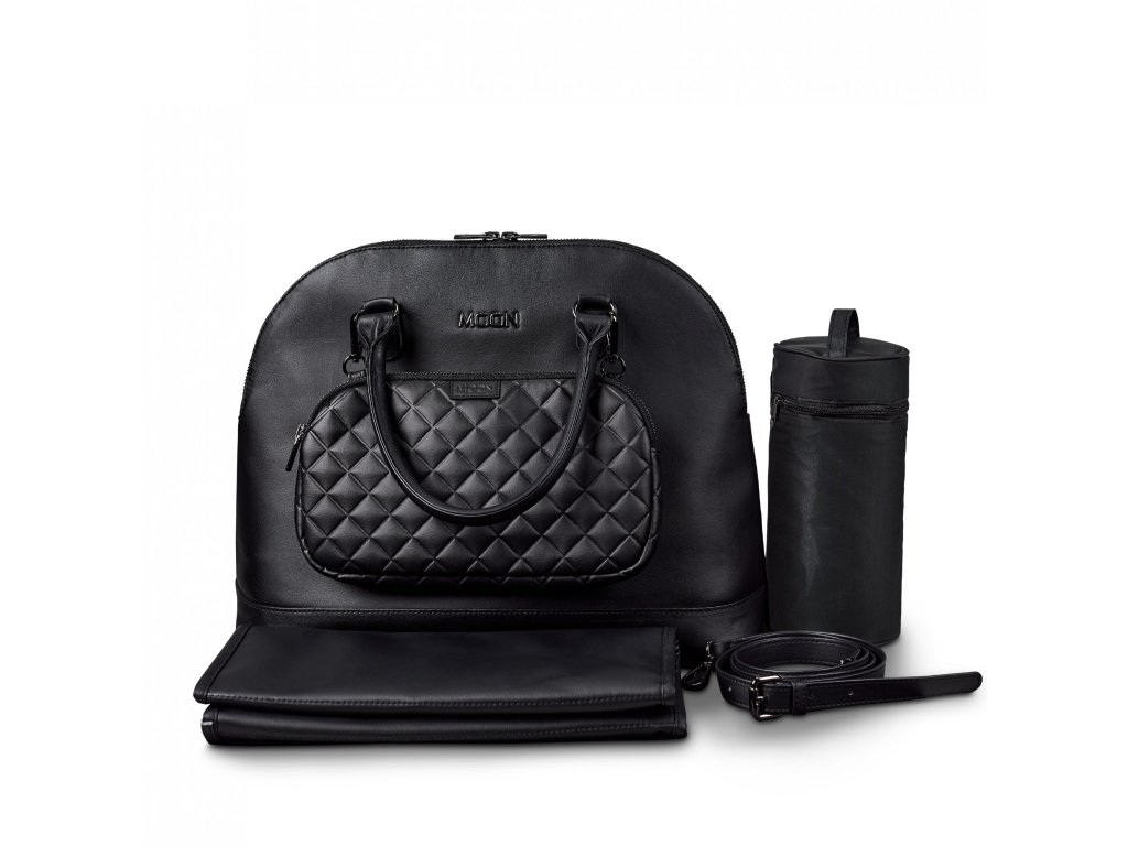 Obsahuje obal na láhev, přebalovací podložku, úchyty na kočárek, popruh na rameno.Odnímatelná přední malá kabelka.