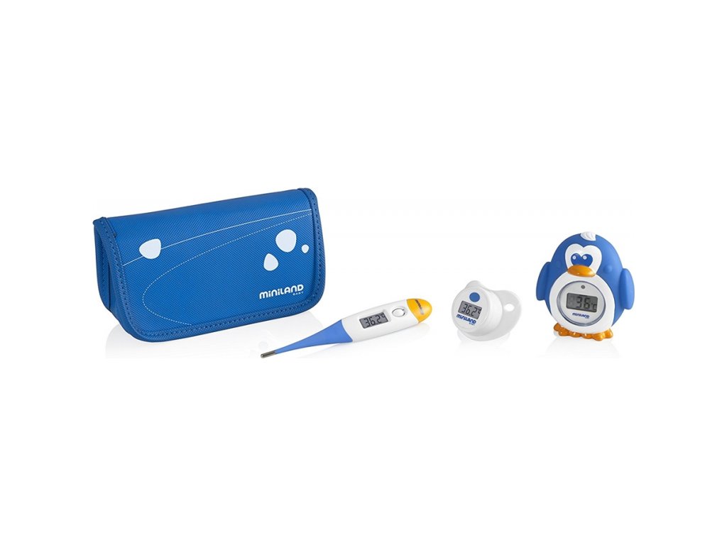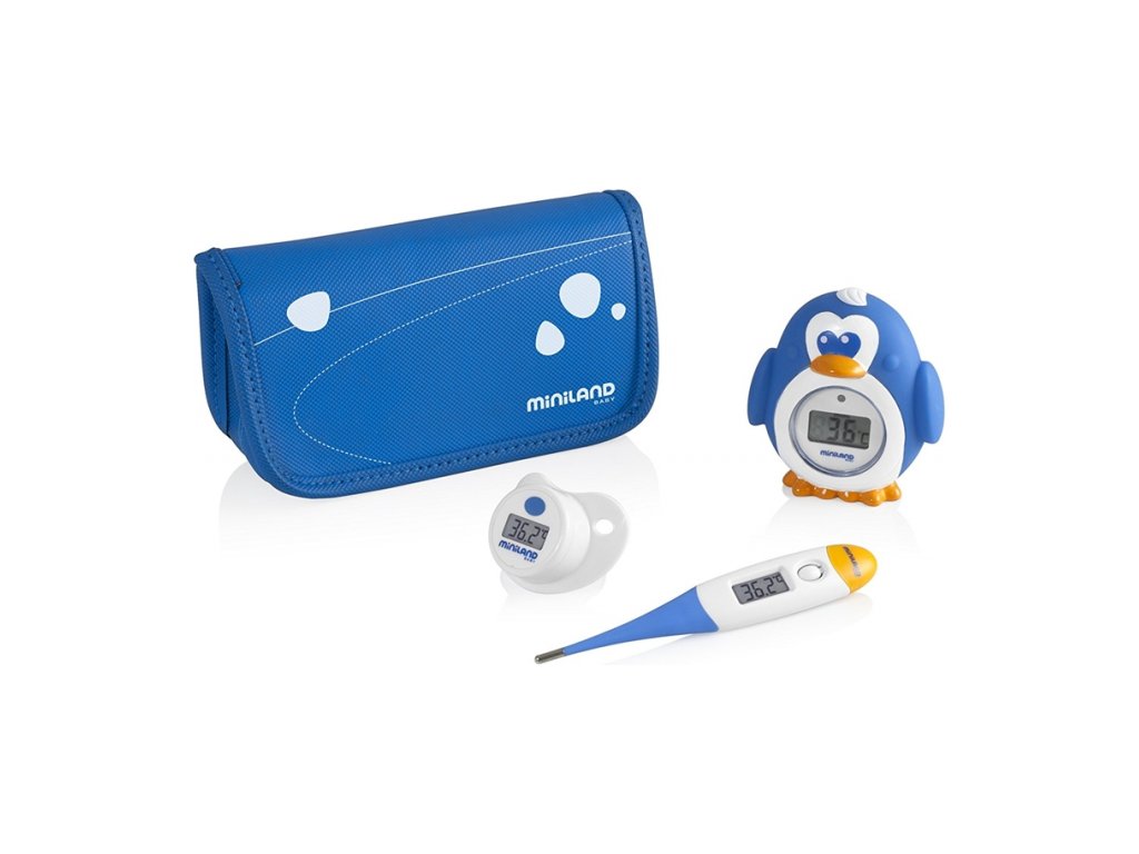 Sadu digitálních teploměrů v praktickém pouzdru tvoří teploměr s pružným koncem, teploměr do vany a dudlíkový teploměr.