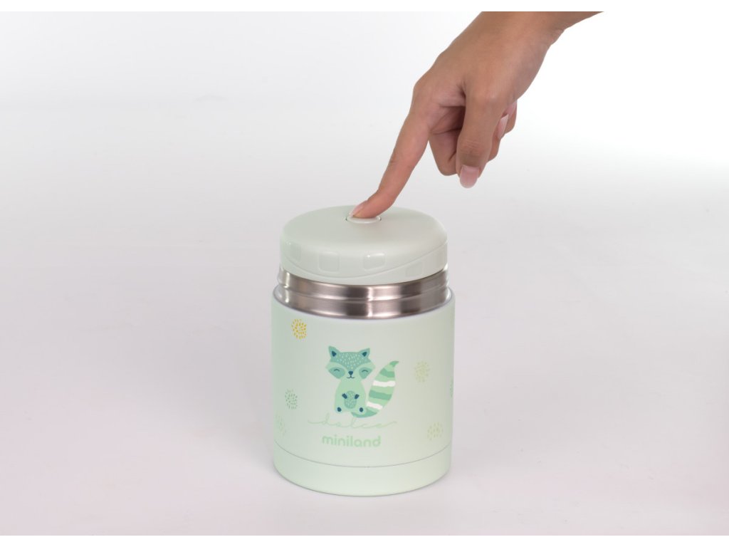 Vakuová termoska Miniland Dolce je vyrobena z vysoce kvalitní dvoustěnné oceli a díky tomu udrží až 12 hodin požadovanou teplotu dětského příkrmu. Termoska je potažena jemným materiálem pro příjemné uchopení.