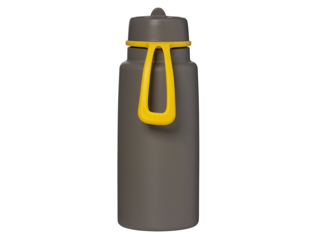 Materiál: lahev, brčko uvnitř lahve - nerezová ocel; víčko a vnější brčko - PP (polypropylen) a TPE (termoplastický elastomer); rukojeť - silikon