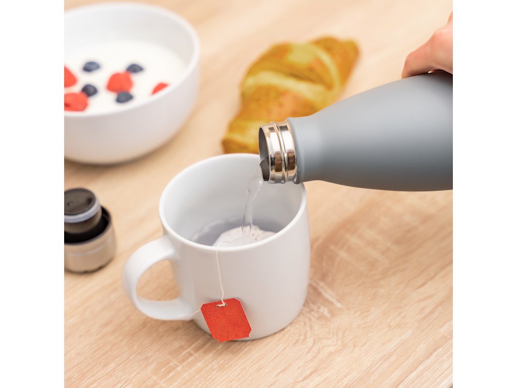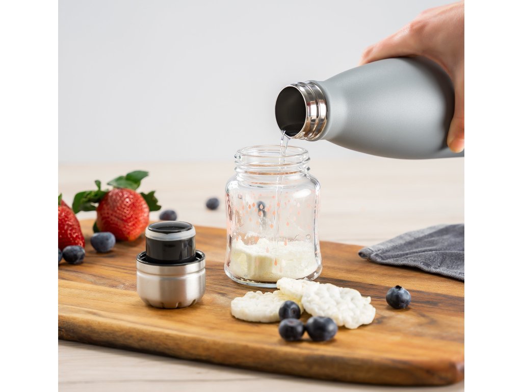 Ideální pro přípravu dětských pokrmů. Lze použít i jako láhev na pití. Udrží převařenou vodu teplou až 12 hodin. Z nerezové oceli: hygienické, bez chuti a nerozbitné. Celkový objem termosky: 550 ml; jmenovitý objem: 500 ml.