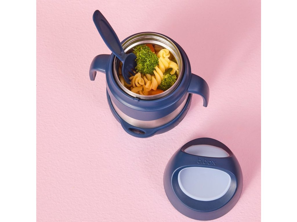 Dvouplášťová termoska australské značky b.box je nezbytným doplňkem na oběd či svačinu na cestách, ve škole či v práci.