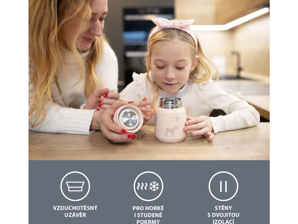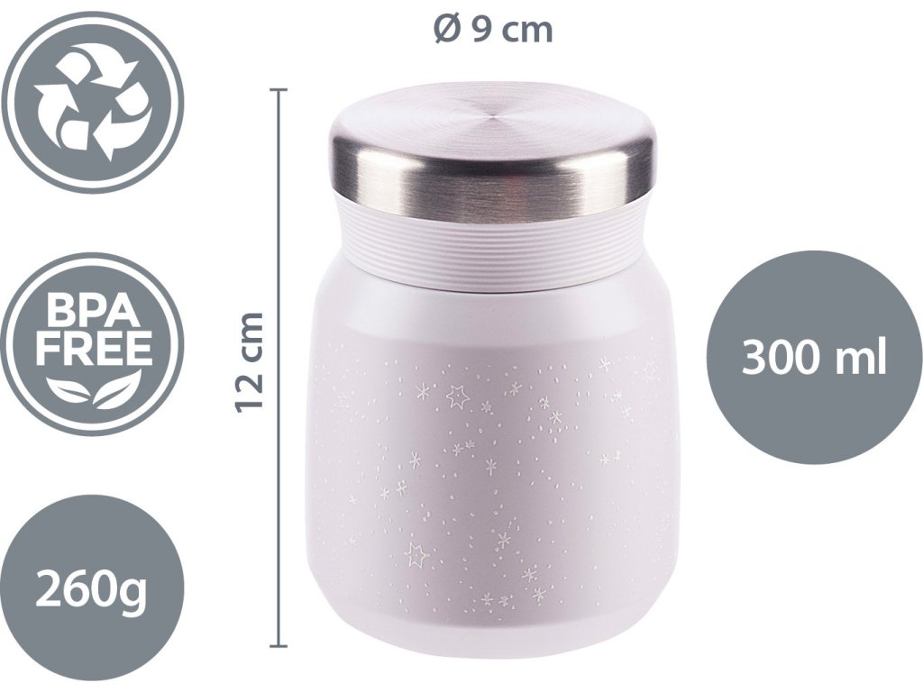 Kvalitní termoska na jídlo a příkrmy o objemu 300 ml uchovává horké jídlo až