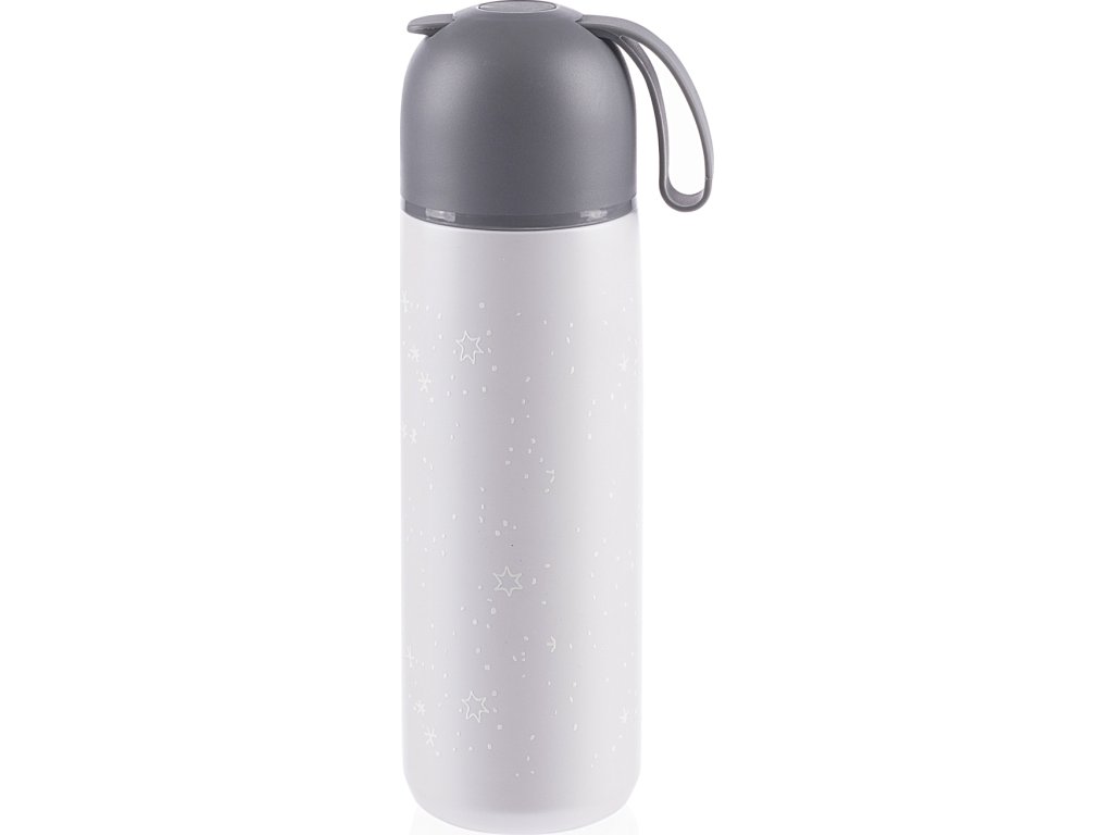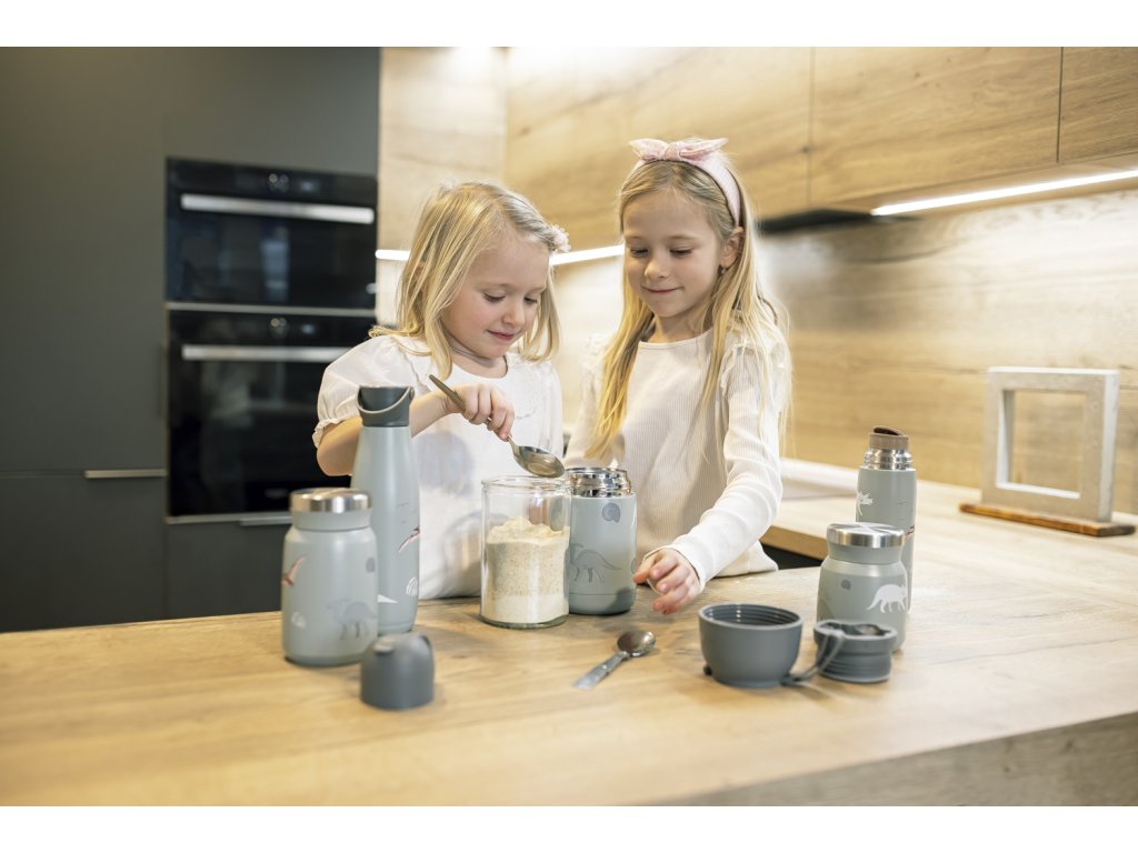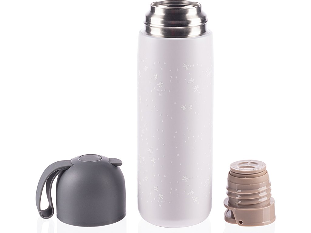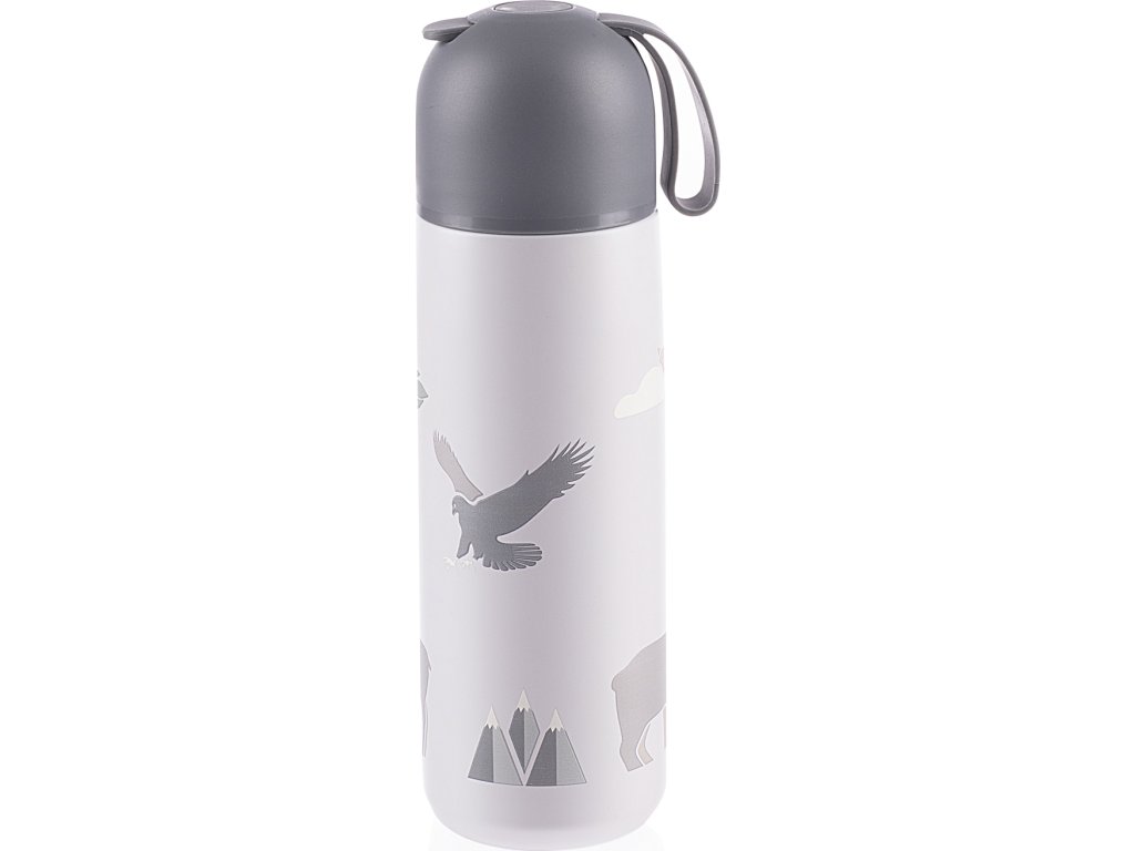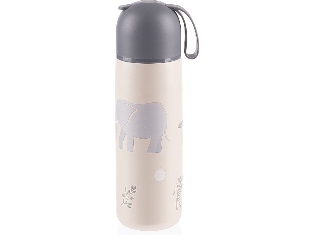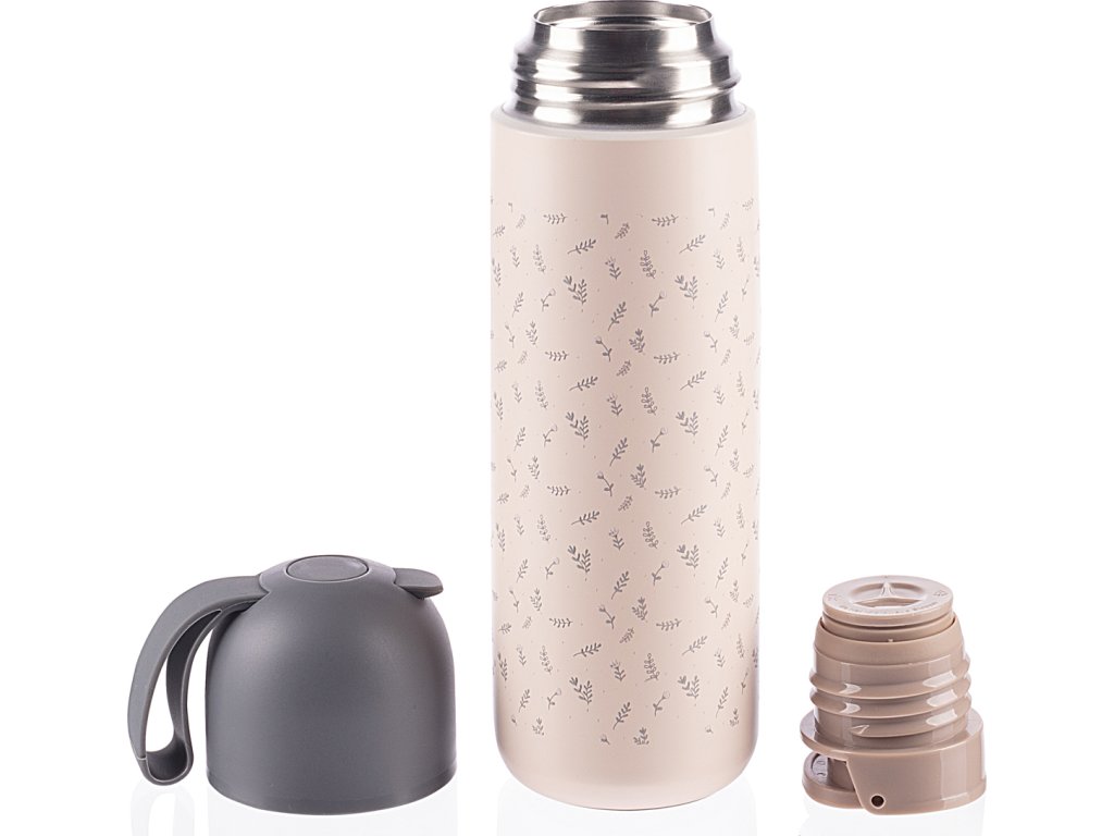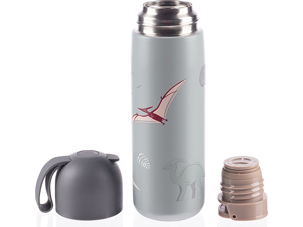 Kvalitní termoska na tekutiny o objemu 400 ml uchovává horké nápoje až 12 hodin, studené až po dobu 24 hodin. Je vyrobena z kvalitní nerezové oceli, která je odolná vůči korozi. Těsné víčko zajišťuje, že termoska neprotéká a vrchní uzávěr pro pohodlné nalévání se postará o to, abyste se nepolili ani při jízdě autem na nerovné cestě, taktéž si můžete být jisti, že se dítě neopaří tekutinou z termosky vzhledem ke dvojitému uzávěru. Víčko termosky lze použít jako hrníček.