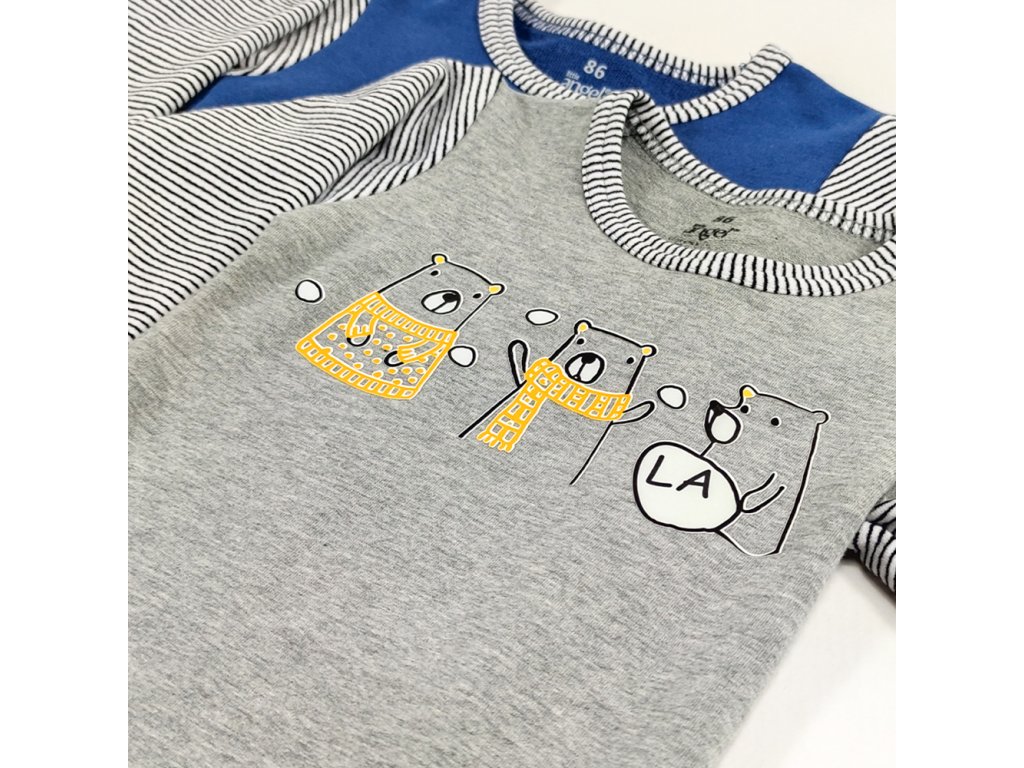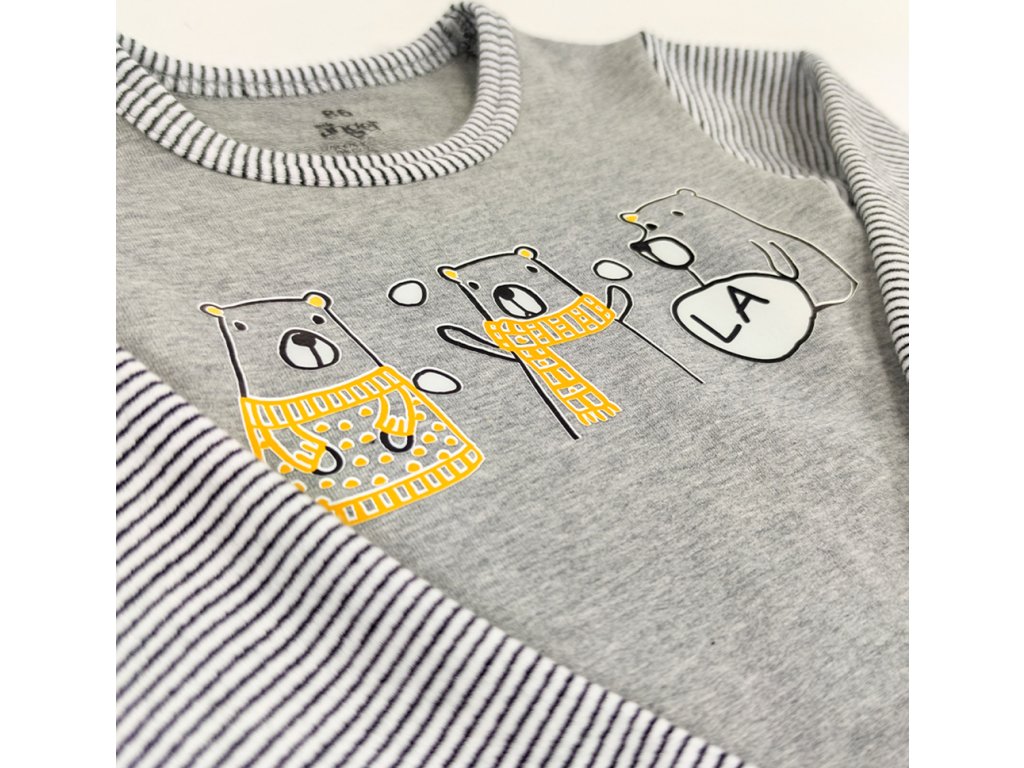 Little Angel Tričko smyk obrázek DR Outlast® - šedý melír-medvědi LA/pruh