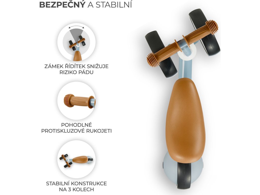 - Ideální odstrkovadlo pro zábavu Vašeho dítěte – CUTIE je vytvořeno s myšlenkou na nejmenší, proto je jeho konstrukce navržena tak, aby se Vaše dítě již při prvním kontaktu s odrážedlem učilo balancovat tělem a udržovat rovnováhu.