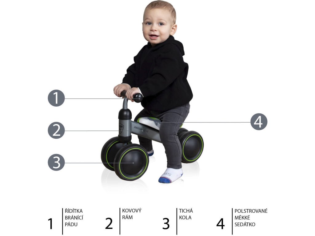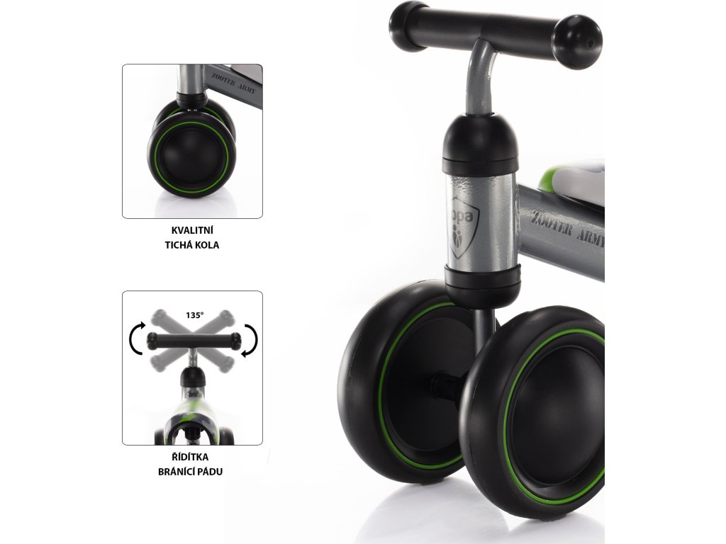 Zooter je odrážedlo pro děti od 18-24 měsíců. Jeho konstrukce je díky kovovém rámu velmi pevná, pohodlí dítěte zajistí měkké polstrované sedátko, technologie koleček ,,silent wheels“ zaručí tichou jízdu.