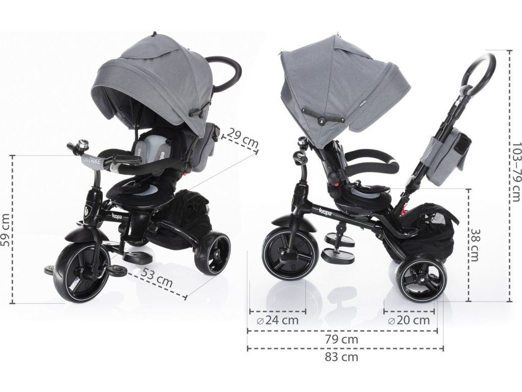 - Demontáž sluneční stříšky, hrazdy, přední opěrky a pedálů umožní dítěti lepší požitek z jízdy.