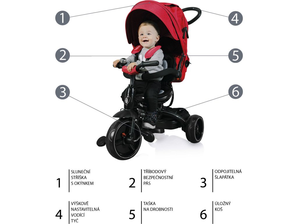 - Možnost odpojení šlapátek, když rodič tlačí tříkolku
