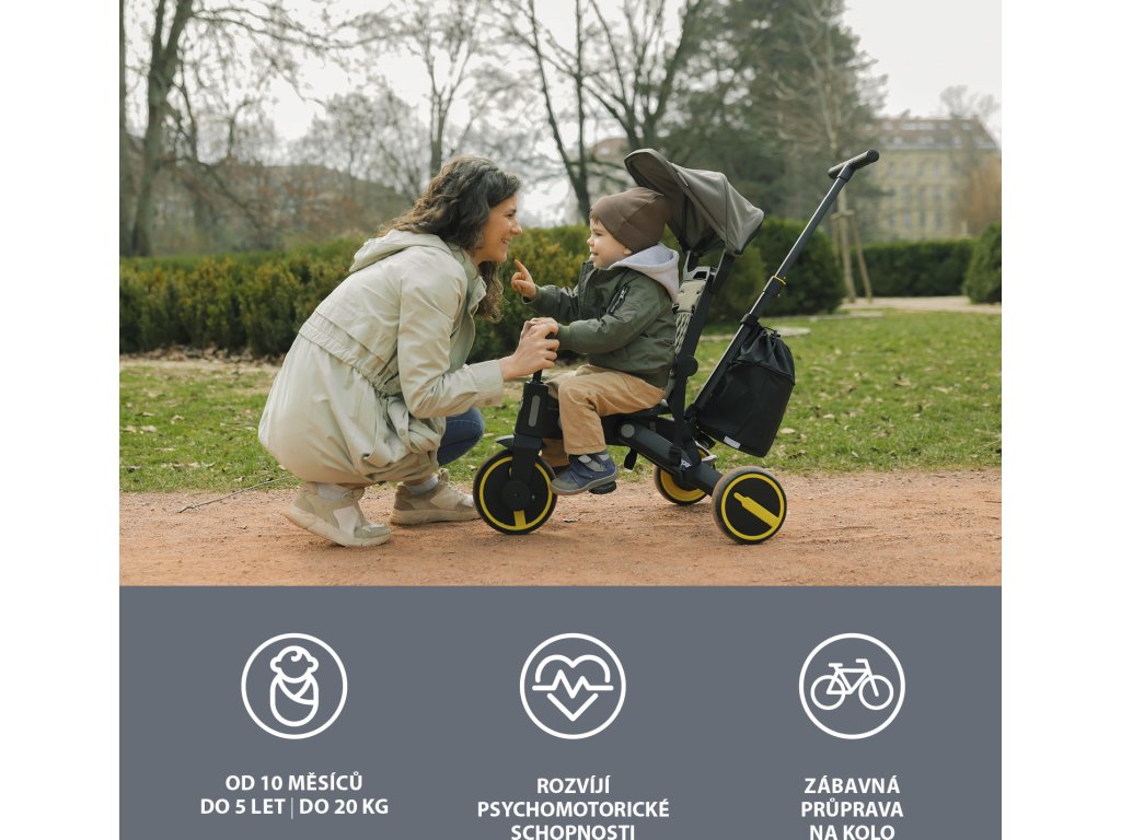 kdy dítě řídí tříkolku samo, nebo pro menší děti jako opěrka nohou. Komfortnější