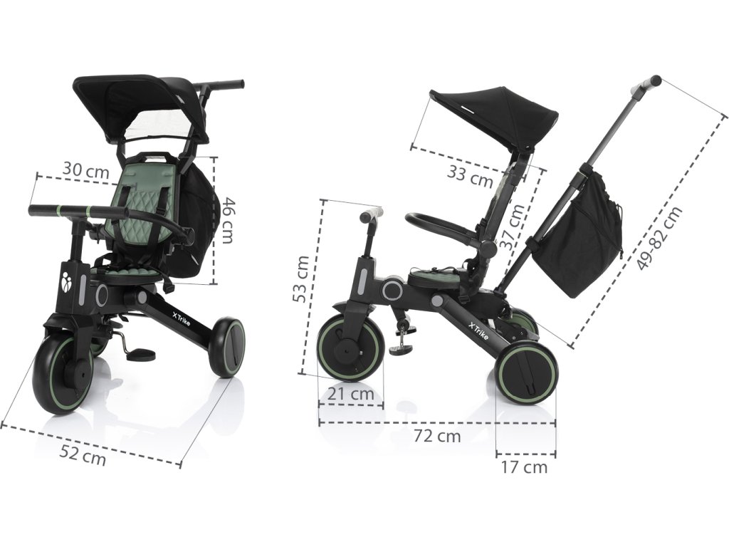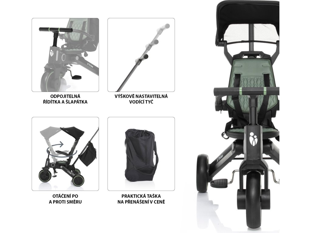X Trike je dokonale skladná tříkolka, kterou můžete oproti většině ostatních tříkolek složit do velmi kompaktních rozměrů, a tak si jí vzít všude s sebou, na každý výlet, protože flexibilita je přesně to, co potřebujete, když máte málo prostoru.