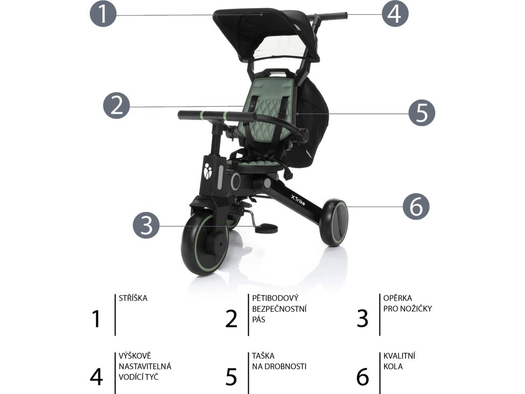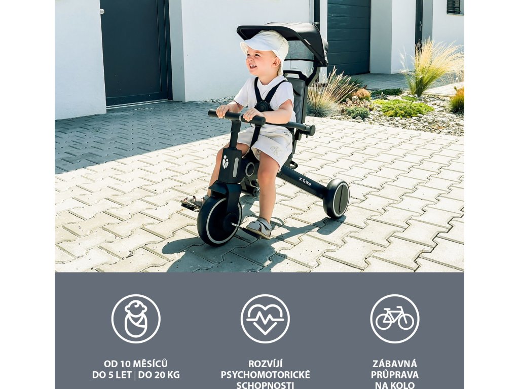 modelu tříkolky X Trike je zabezpečení zajištěno 5bodovým pásy, nastavitelnou