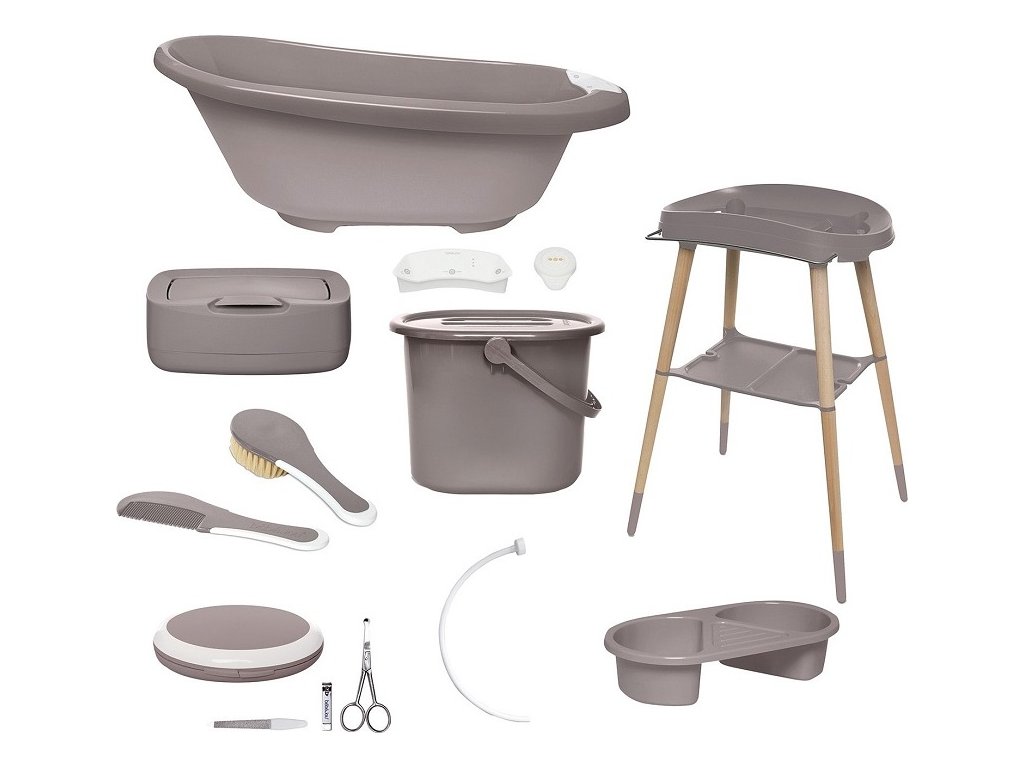 Sada obsahuje: digitální vaničku Sense Edition a luxusní stojan z lakovaného buku, kyblík na plenky, sadu na manikúru, hřeben a kartáč, misku na mytí, box na vlhčené ubrousky a vypouštěcí hadici. Zkrátka vaše kompletní vybavení pro péči a koupání!