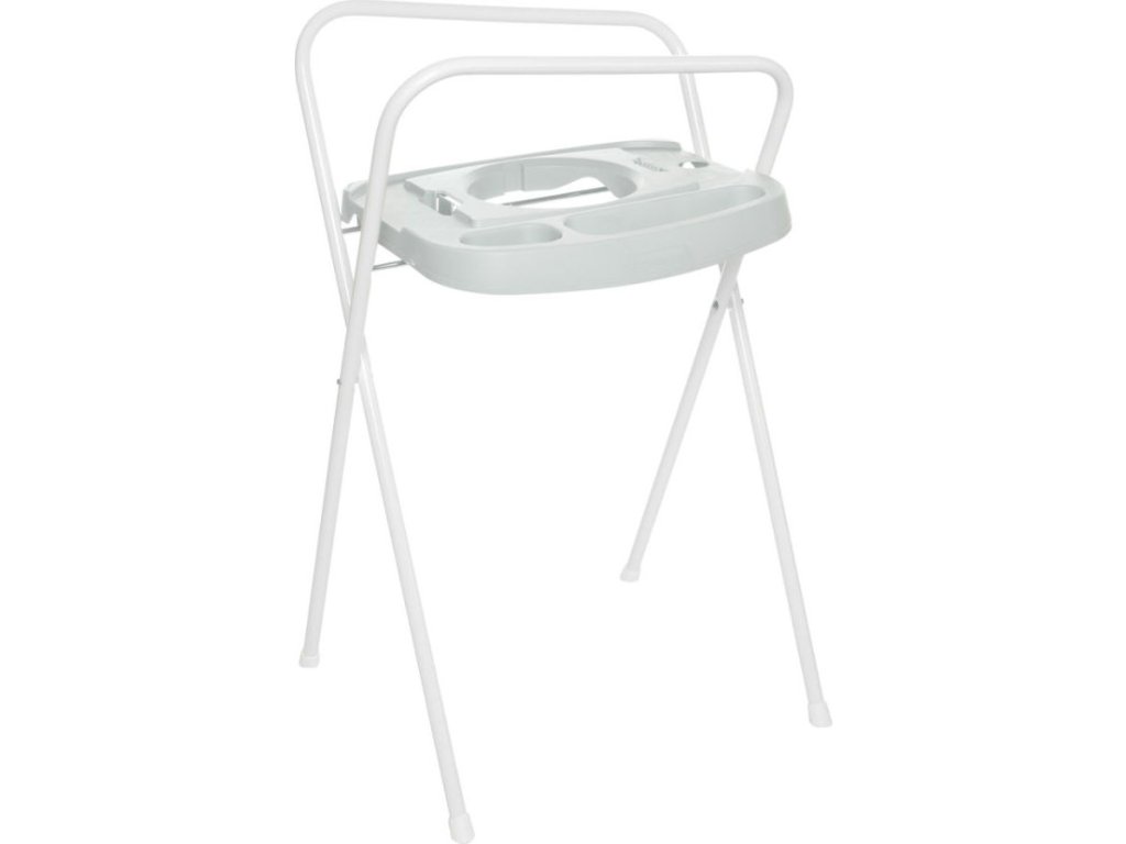 Kovový stojan na vaničku, termovaničku a koupací kyblík Bébé-Bubble má výšku 103 cm, otvor na zavěšení ručníku a vytvořeno místo na mýdlo. Stojan je skládací a je vybavený inovativním Click systémem. Jen 2 kliknutí a vanička je snadno a bezpečně umístěna na koupací stojan. Stejně snadno může být za pomoci kliknutí vanička ze stojanu odpojena. Také koupací kyblík Bébé-Bubble je možné na tento stojan umístit, takže vám stačí koupit jen 1 stojan a na něj umístit nejprve Bébé-Bubble a potom vaničku.