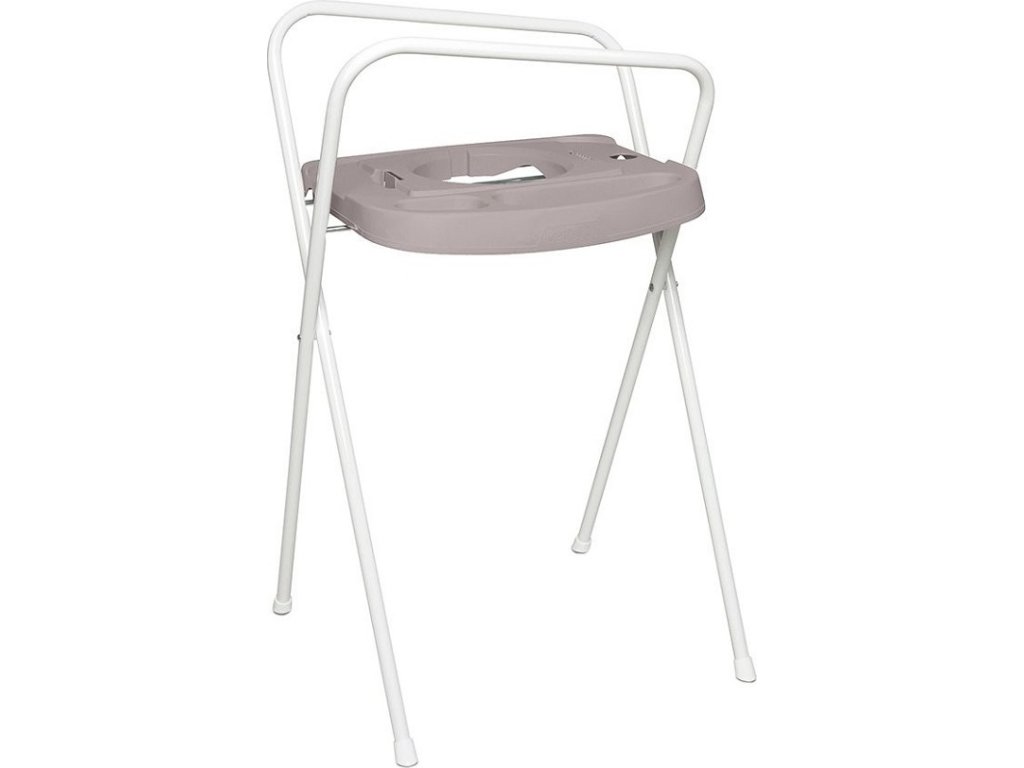Stojan má výšku 98 cm, otvor na zavěšení ručníku a vytvořeno místo na mýdlo. Je skládací a je vybaven inovativním Click systémem. Jen 2 kliknutí a vanička je snadno a bezpečně umístěna na koupací stojan. Stejně snadno může být za pomoci kliknutí vanička ze stojanu odpojena. Také koupací kyblík Bébé-Bubble je možné na tento stojan umístit, takže vám stačí koupit jen 1 stojan a na něj umístit nejprve Bébé-Bubble a potom vaničku.
