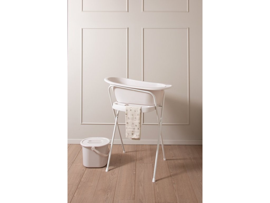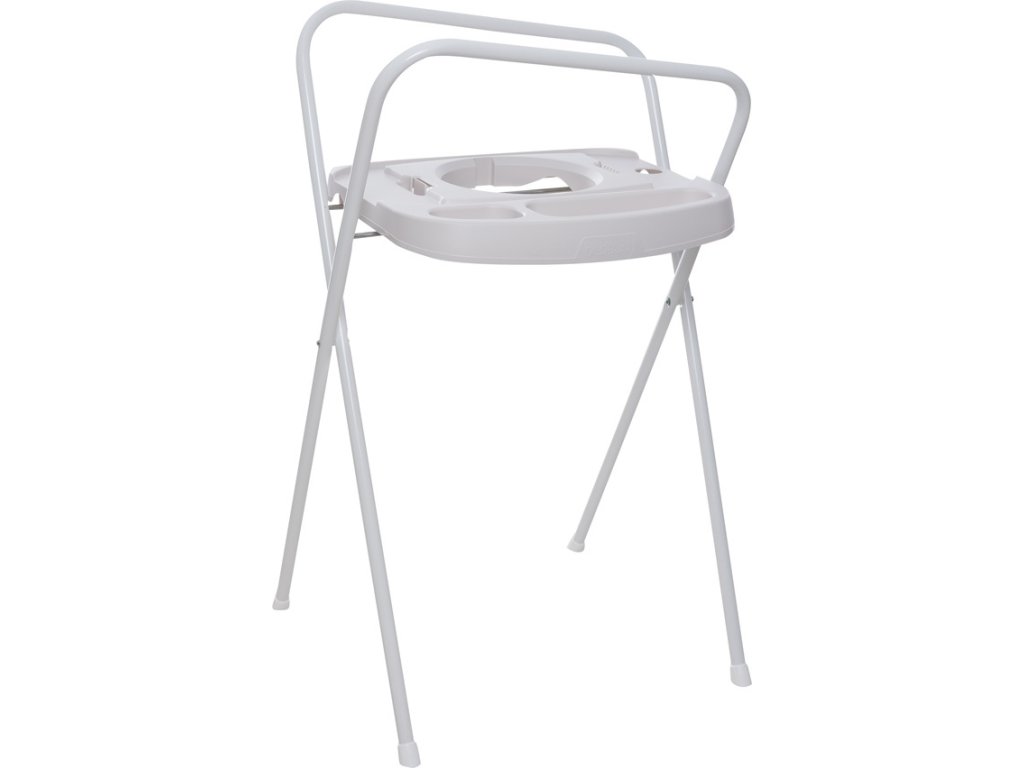 Kovový stojan na vaničku, termovaničku a koupací kyblík Bébé-Bubble má výšku 98cm, otvor na zavěšení ručníku a vytvořeno místo na mýdlo. Stojan je skládací a je vybavený inovativním Click systémem. Jen 2 kliknutí a vanička je snadno a bezpečně umístěna na koupací stojan. Stejně snadno může být za pomoci kliknutí vanička ze stojanu odpojena. Také koupací kyblík Bébé-Bubble je možné na tento stojan umístit, takže vám stačí koupit jen 1 stojan a na něj umístit nejprve Bébé-Bubble a potom vaničku.