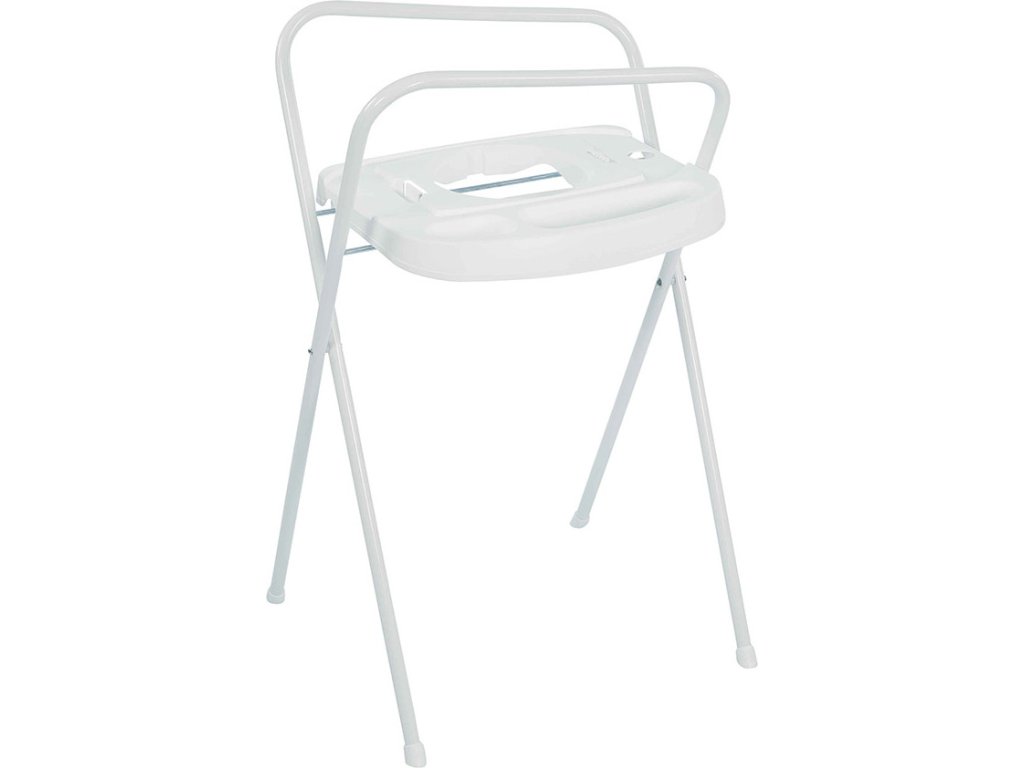 Kovový stojan na vaničku, termovaničku a koupací kyblík Bébé-Bubble má výšku 98 cm, otvor na zavěšení ručníku a vytvořeno místo na mýdlo. Stojan je skládací a je vybavený inovativním Click systémem. Jen 2 kliknutí a vanička je snadno a bezpečně umístěna na koupací stojan. Stejně snadno může být za pomoci kliknutí vanička ze stojanu odpojena. Také koupací kyblík Bébé-Bubble je možné na tento stojan umístit, takže vám stačí koupit jen 1 stojan a na něj umístit nejprve Bébé-Bubble a potom vaničku.