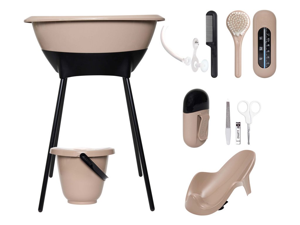 Máte rádi krásné moderní věci a nechcete za ně utratit příliš mnoho peněz? Tak si vyberte LUMU. Sada všech výrobků trendové holandské značky LUMA babycare, které budete ke koupání potřebovat sestává z dětské plastové vaničky, stojanu pod vaničku , kyblíku na pleny s víkem, koupacího lehátka, koupacího teploměru, hřebínku a kartáčku, dětské manikúry a odtokové hadice).