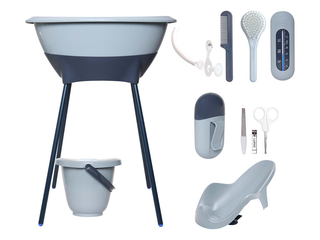 Máte rádi krásné moderní věci a nechcete za ně utratit příliš mnoho peněz? Tak si vyberte LUMU. Sada všech výrobků trendové holandské značky LUMA babycare, které budete ke koupání potřebovat sestává z dětské plastové vaničky, stojanu pod vaničku , kyblíku na pleny s víkem, koupacího lehátka, koupacího teploměru, hřebínku a kartáčku, dětské manikúry a odtokové hadice).