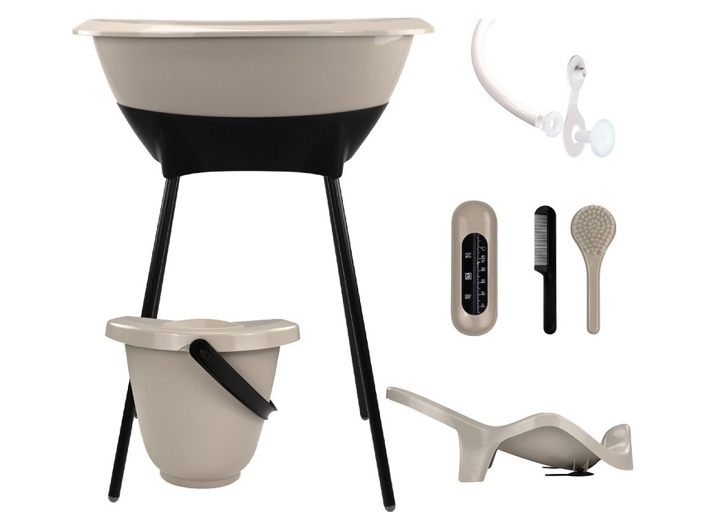Máte rádi krásné moderní věci a nechcete za ně utratit příliš mnoho peněz? Tak si vyberte LUMU. Sada všech výrobků trendové holandské značky LUMA babycare, které budete ke koupání potřebovat sestává z dětské plastové vaničky, stojanu pod vaničku , kyblíku na pleny s víkem, koupacího lehátka, koupacího teploměru, hřebínku a kartáčku a odtokové hadice.