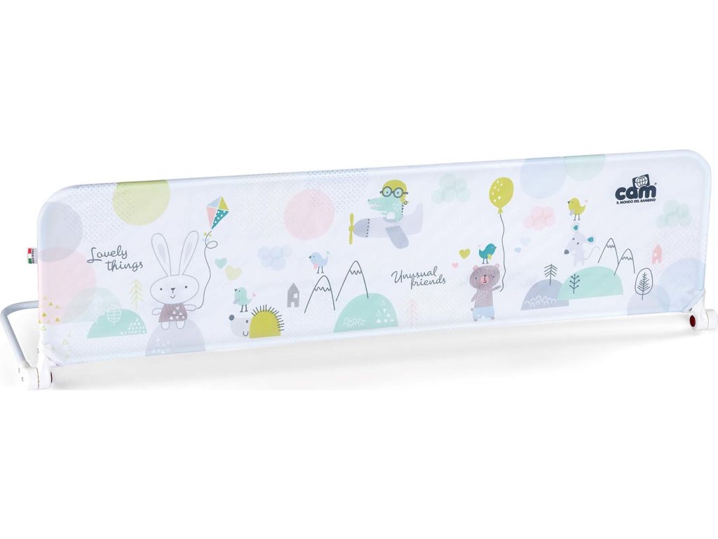Stabilní a pevná zábrana na postel, která dítě ochrání před pádem z postýlky, s veselým barevným potiskem v limitované edici.