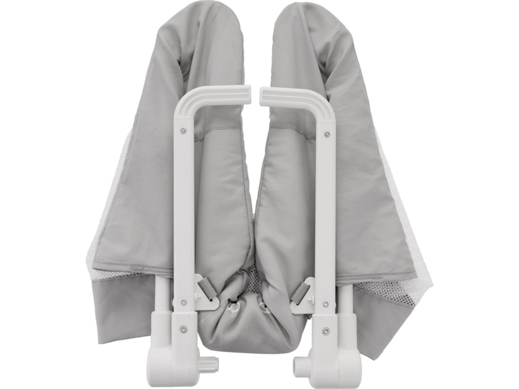 Díky integrované funkci sklopení může být posuvná zábrana snadno a pohodlně sklopena, když ji nepoužíváte. Stisknutím tlačítek na boku můžete uvolnit zámek a sklopit ji. To usnadňuje přístup k posteli a vašemu dítěti. (Sklopení není možné u všech typů postelí!).