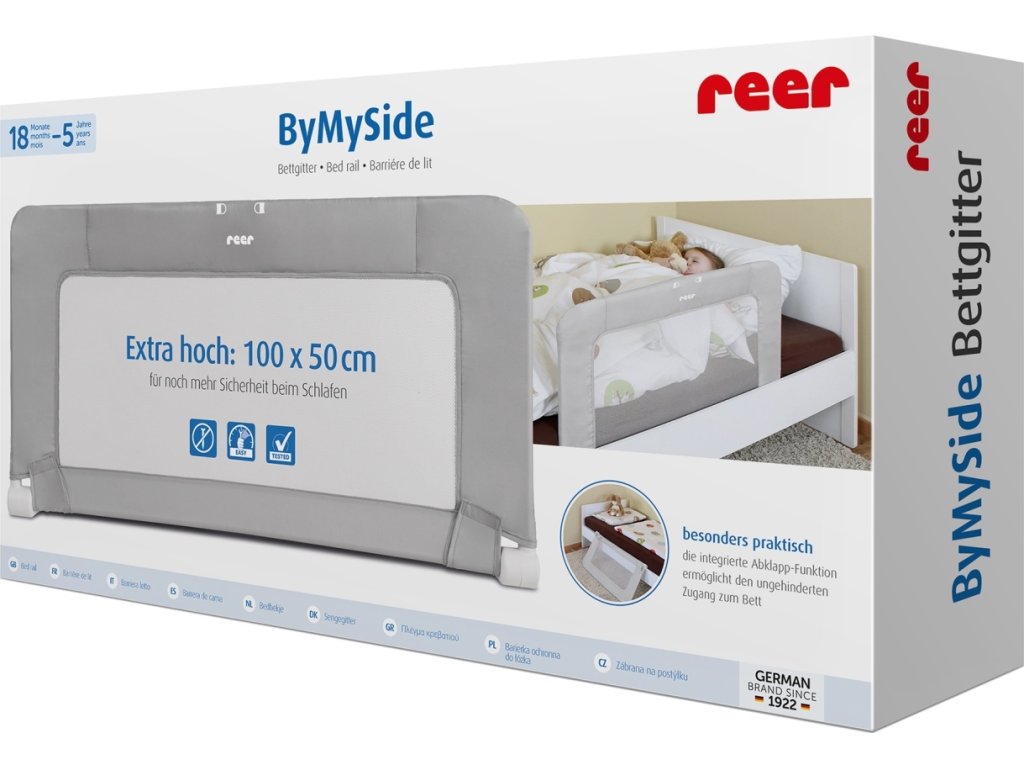 S výškou 50 cm poskytuje zábrana ByMySide ještě větší bezpečnost při spánku. Díky velikosti XL je vhodná také pro vysoké matrace a to až do tloušťky 30 cm. Mimořádně měkká nylonová tkanina je příjemná a poskytuje nejen bezpečnost, ale také nabízí ochranu před bolestivými nárazy na rám postele.