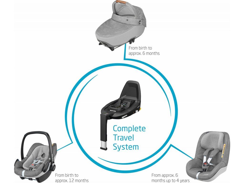 Základna poskytuje dokonalé ukotvení pro autosedačky Maxi-Cosi Pebble Plus, Rock, Pebble Pro i-Size, Pearl Pro i-Size, Pearl Smart i-Size a pro autokorbičku Maxi-Cosi Jade. Všechny tyto výrobky splňují nejpřísnější bezpečnostní normu i-Size ( R129) a tím zaručují maximální ochranu dítěte při cestování autem.