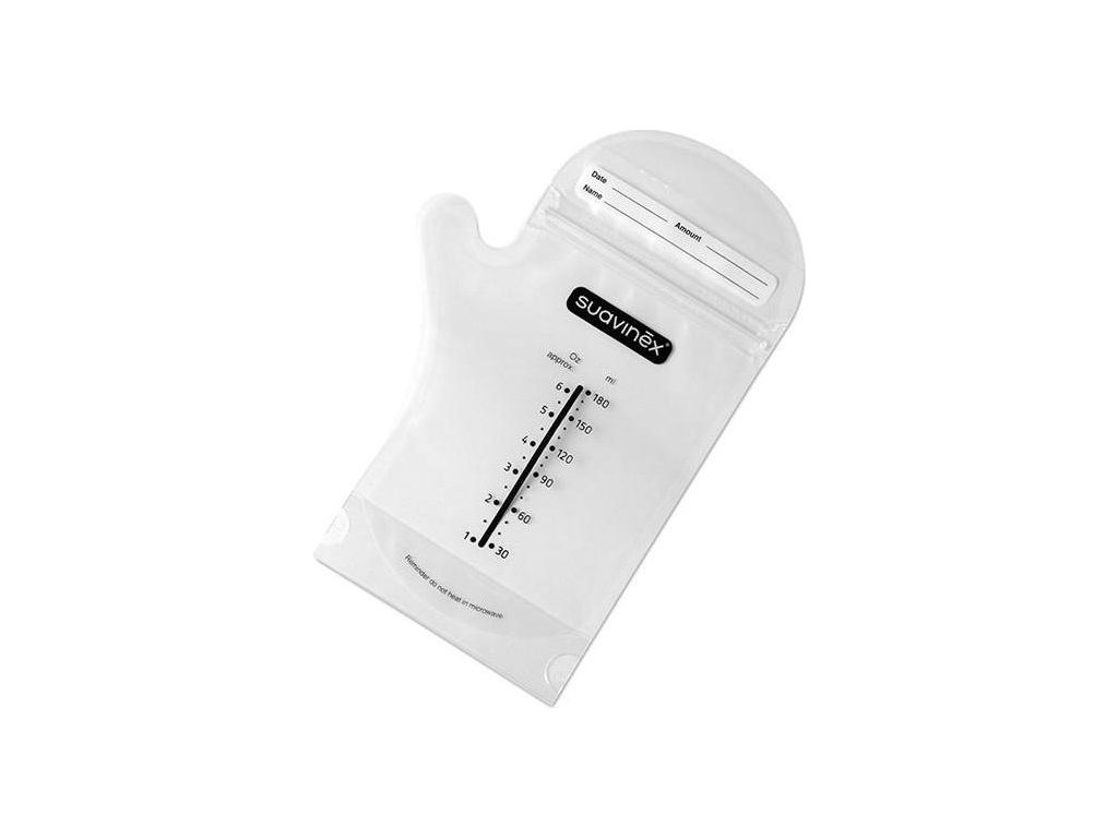 SUAVINEX | Sáčky pro skladování mateřského mléka - 25 ks Jednorázové sáčky Suavinex s postranní nálevkou umožňují jednoduché skladování mateřského mléka po jeho odstříkání. Naplněné sáčky mohou být uskladněny v lednici či v mrazáku a díky svému širokému průměru získávají důležitou stabilitu. Svou malou velikostí jsou velmi skladné a mohou být naskládané jednotlivě na sebe. Boční nálevkou lehce, hygienicky a beze zbytku do poslední kapky mateřské mléko vylijete do kojenecké láhve. Na štítek sáčku máte možnost zaznamenat datum jeho otevření a uzavření. Sáčky jsou před-sterilizované a není nutné je opět před použitím umývat nebo sterilizovat.