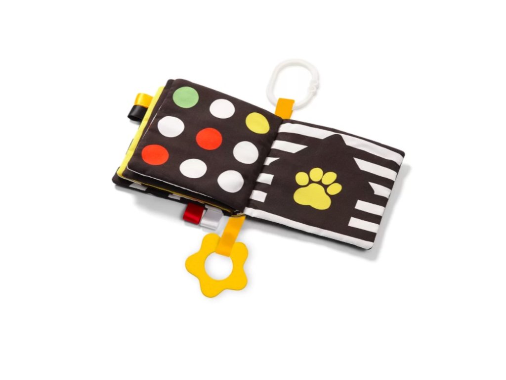 Kniha umožňuje získávání nových dovedností, od nácviku úchopu, přes stimulaci práce dásní pomocí kousátek, až po získání zajímavých vizuálních a sluchových zážitků a studium různých materiálových textur. Vestavěné zrcadlo umožňuje dítěti objevovat bezprostřední okolí z různých perspektiv.