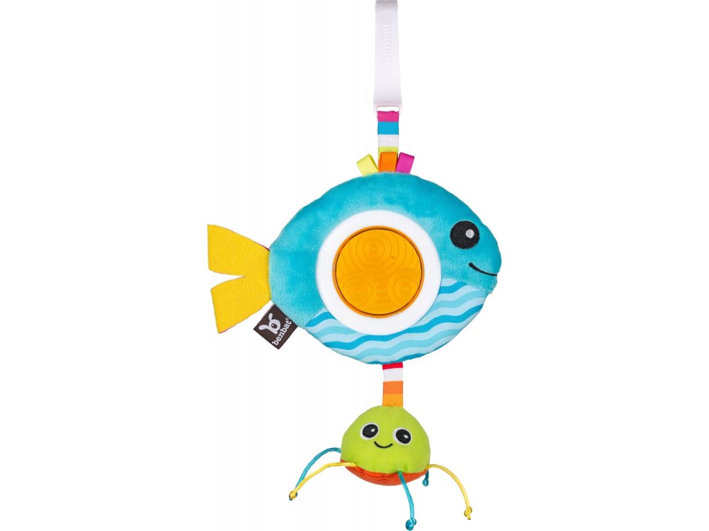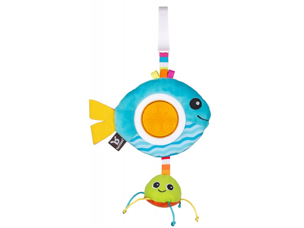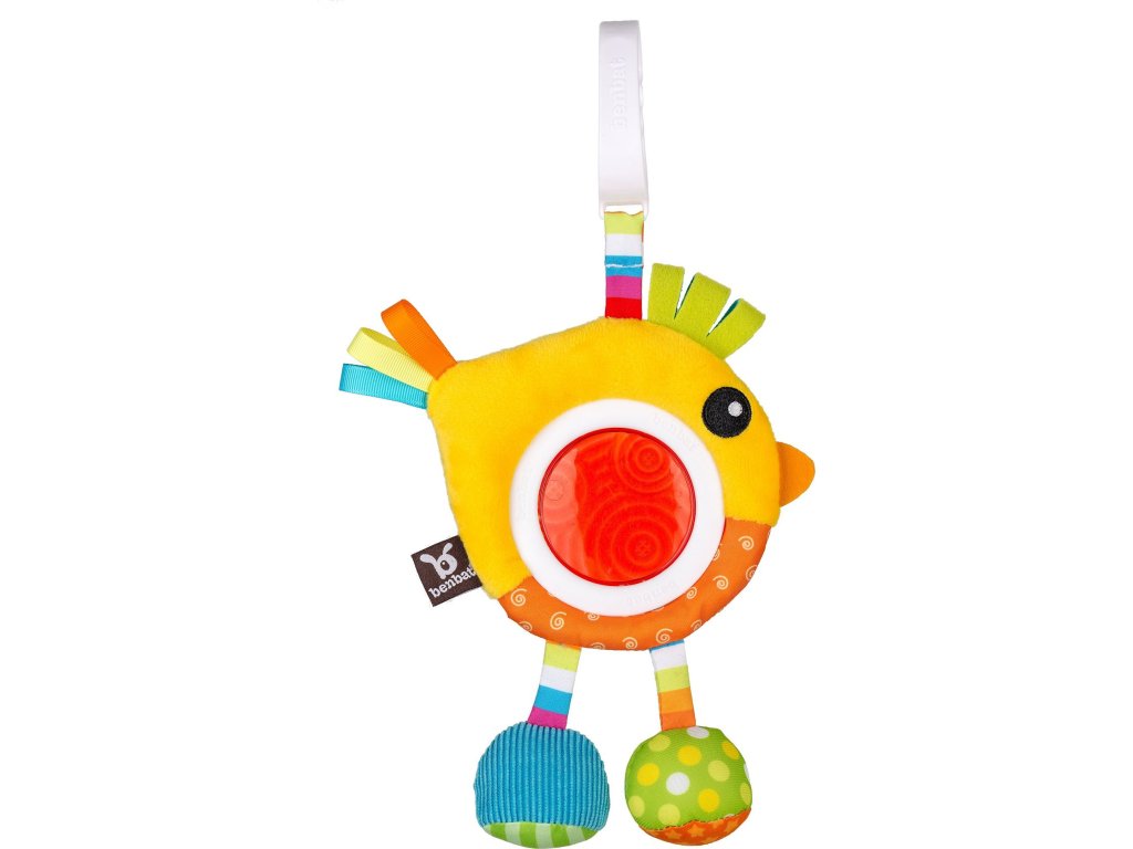 Světlé barvy, roztomilý, plyšový zvířecí kamarád, stuhy a chrastítka budou děti nejen bavit, ale zároveň budou rozvíjet jejich psychomotorické dovednosti. Chrastítko v bříšku plyšového zvířátka učí dítě zaměřit a identifikovat zvuky, pohyblivé části trénují koordinaci “oko - ruka”. Snadno upevnitelný klip ke kočárkům, autosedačkám a dalším zajišťuje, že hračka bude vždy směřovat k dítěti. Plastové části neobsahují BPA. Vhodné od narození.
