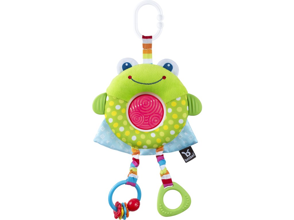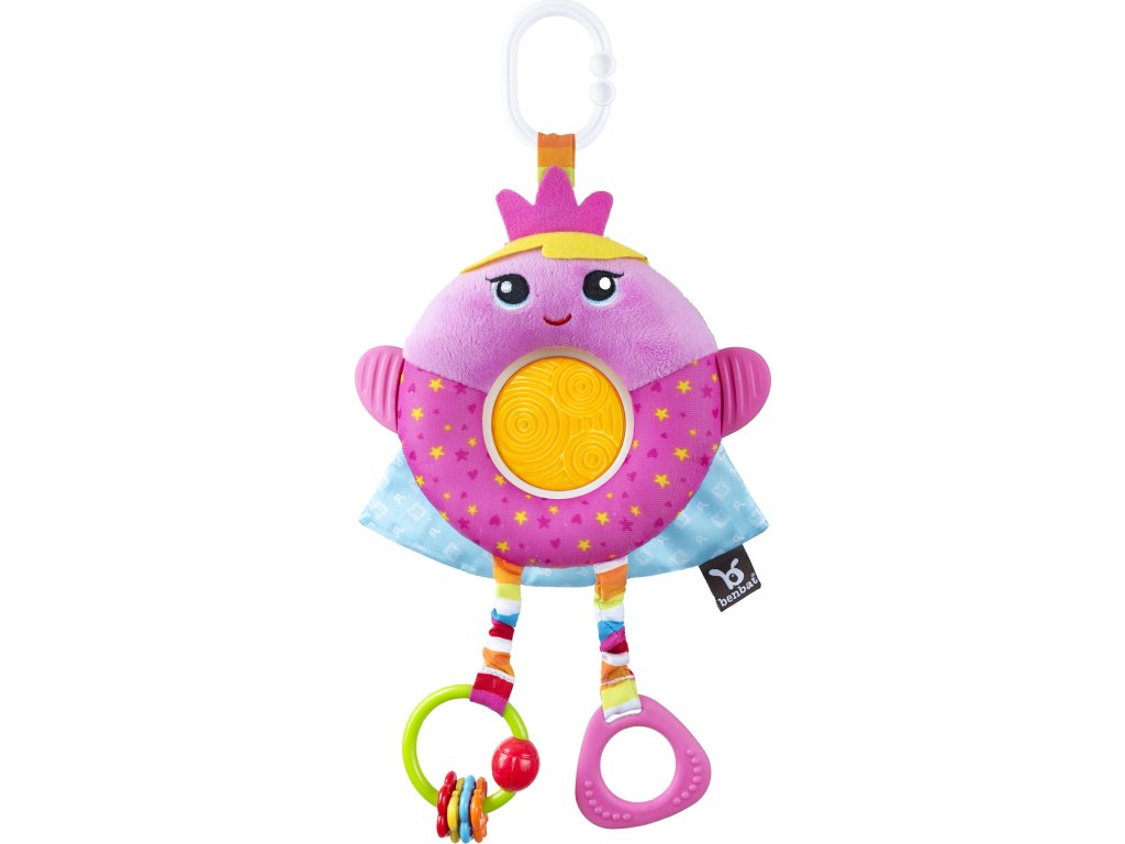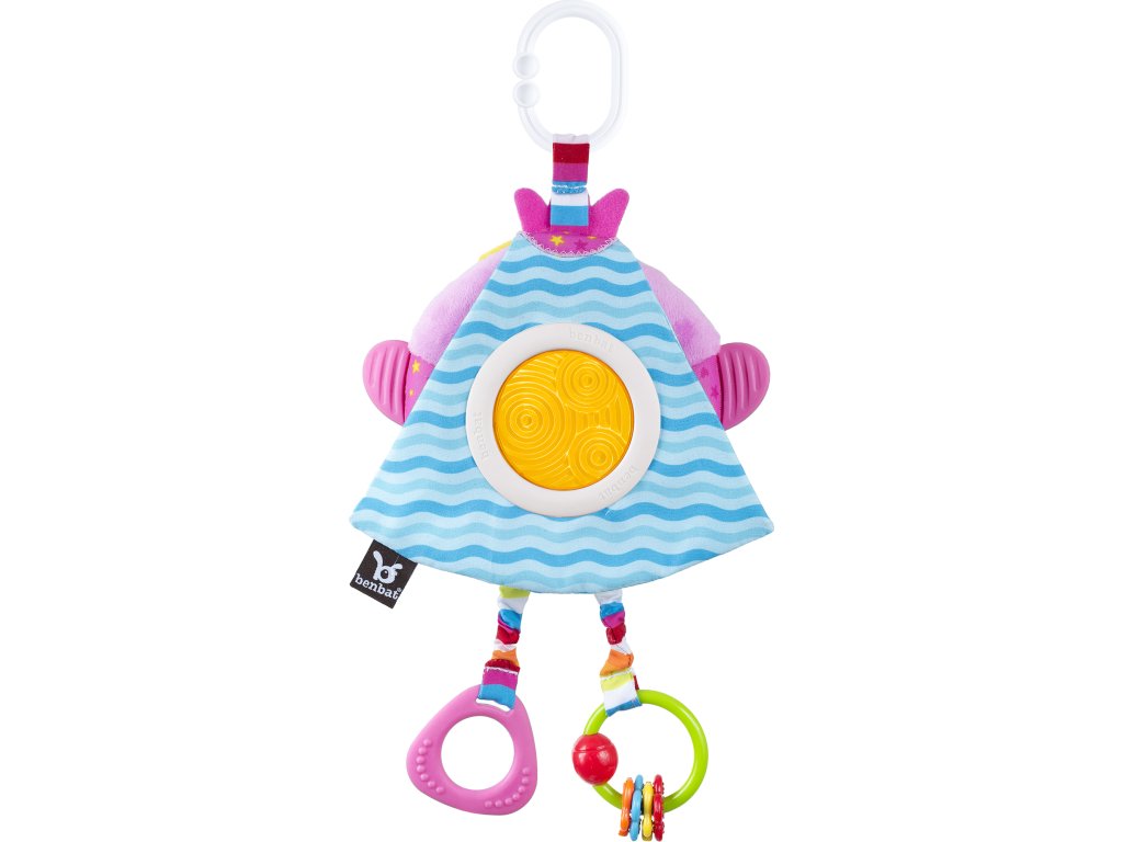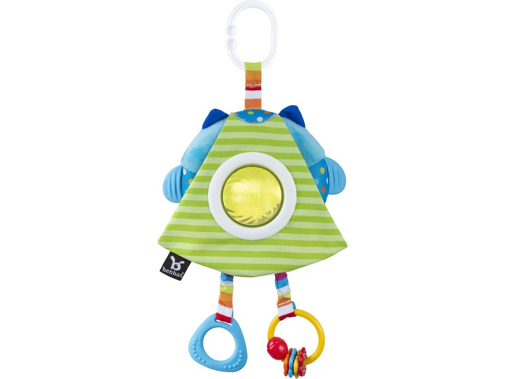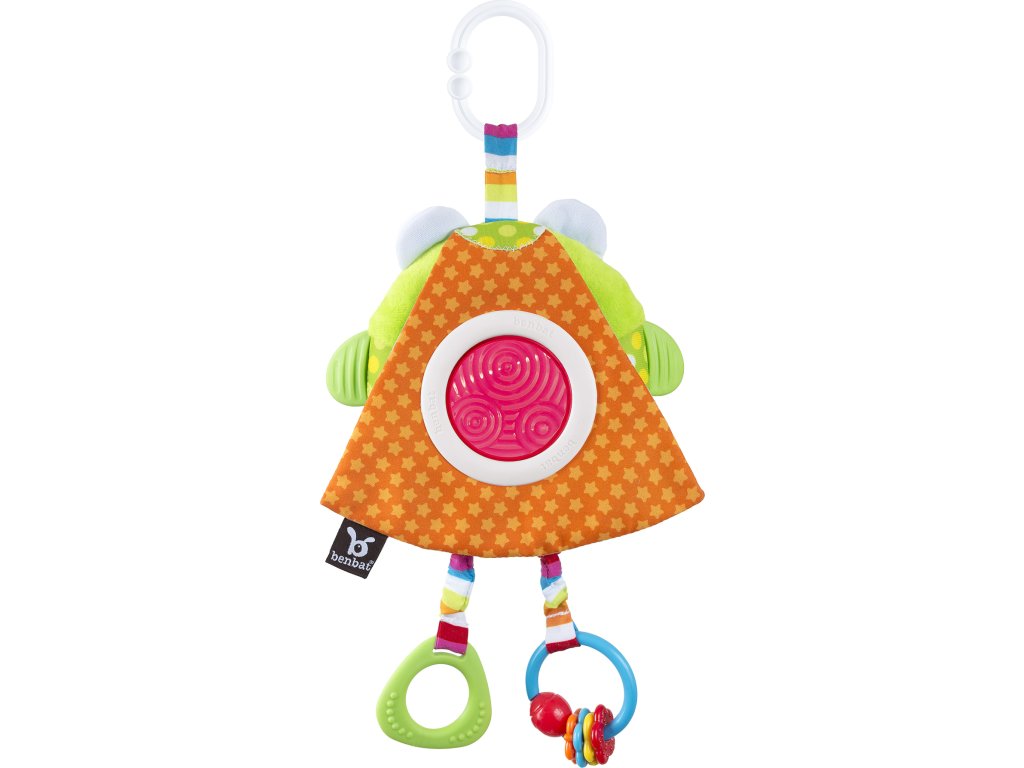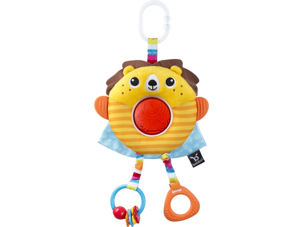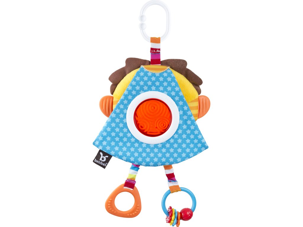 Světlé barvy, roztomilý, plyšový zvířecí kamarád, stuhy a chrastítka budou děti nejen bavit, ale zároveň rozvíjet jejich psychomotorické dovednosti. Chrastítko v bříšku plyšového zvířátka učí dítě zaměřit a identifikovat zvuky, pohyblivé části trénují koordinaci “oko - ruka”. Snadno upevnitelný klip ke kočárkům, autosedačkám a dalším zajišťuje, že hračka bude vždy směřovat k dítěti. Plastové části neobsahují BPA. Vhodné od narození.